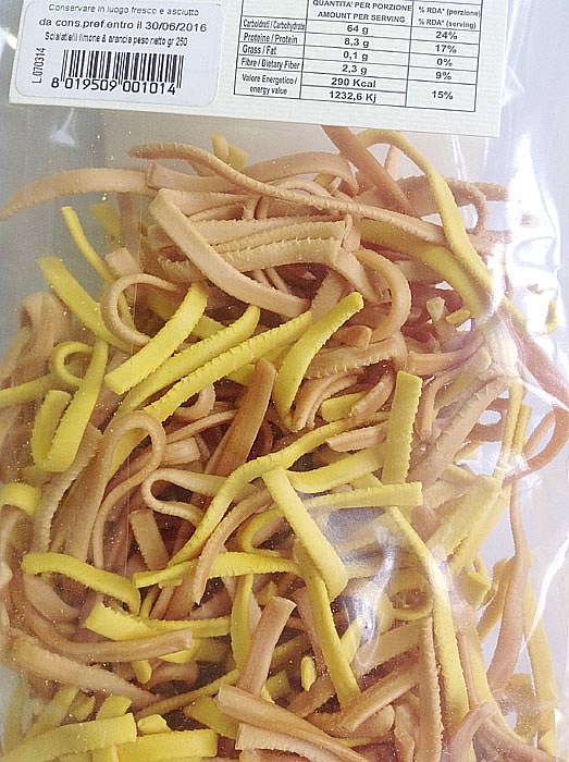 Паста c лимоном и апельсином / Scialatielli al limone e arancia - паста в форме "узкой лапши" со вкусом лимона и апельсина.