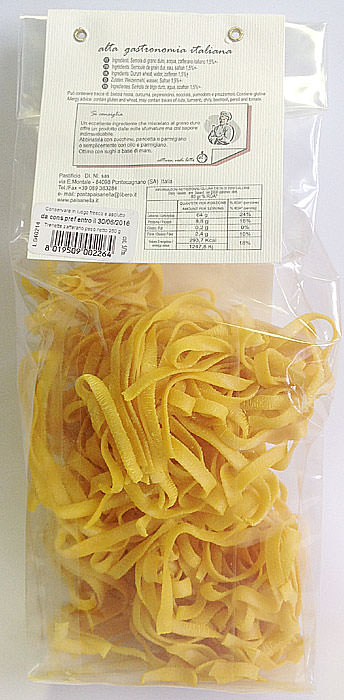 Паста c шафраном / Trenette allo zafferano - паста в форме "узкой лапши" с добавлением шафрана - редкой и дорогой специи. Вкус пасты прекрасно раскроется в сочетании с соусом из омара, а также просто с топленым сливочным маслом и тертым пармезаном. Рекомендуем попробовать с жульеном из кабачков и с ветчиной в корочке из пармезана.