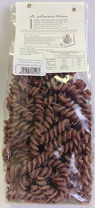 Паста c шоколадом, Paisanella / Capricci al cioccolato - паста в форме "спирали" с добавлением....ШОКОЛАДА! Неповторимые ощущения! Возможно, такого Вы никогда не пробовали. Рекомендуем попробовать с мягкими сырами, такими, как рикотта/маскарпоне, со сливочным соусом, сгущённым молоком, орехами, фруктами, шоколадом.