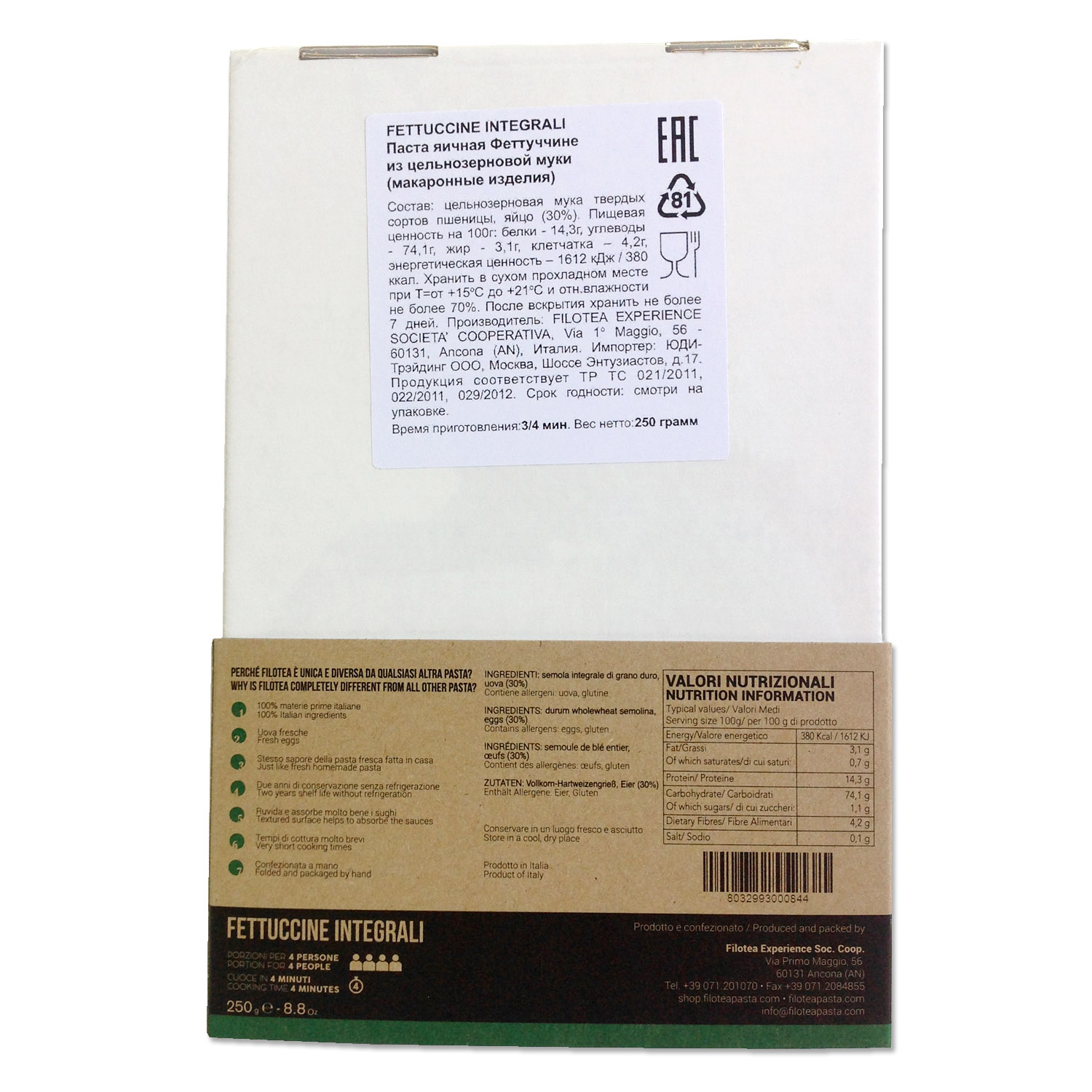 Паста Феттуччине из ЦЕЛЬНОЗЕРНОВОЙ муки с высоким содержанием клетчатки, белков, витаминов и минеральных солей и низким содержанием жира представляет БИО-линию продукции бренда "FILOTEA". Длинная паста шириной 1 см.
