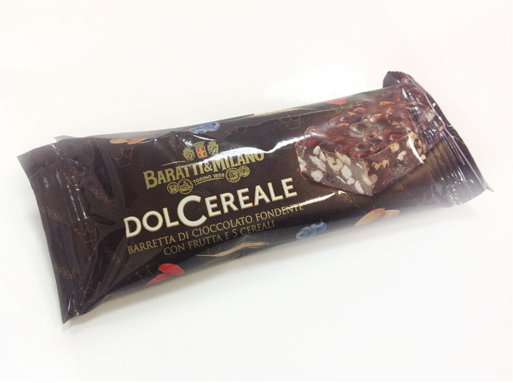 Батончик ДОЛЬЧЕРЕАЛЕ из горького шоколада 70% / DOLCEREALE с горьким шоколадом 70% какао - фитнес-батончик с ягодами годжи, цельными злаками, ключквой, миндалем и пр. - от Baratti & Milano.