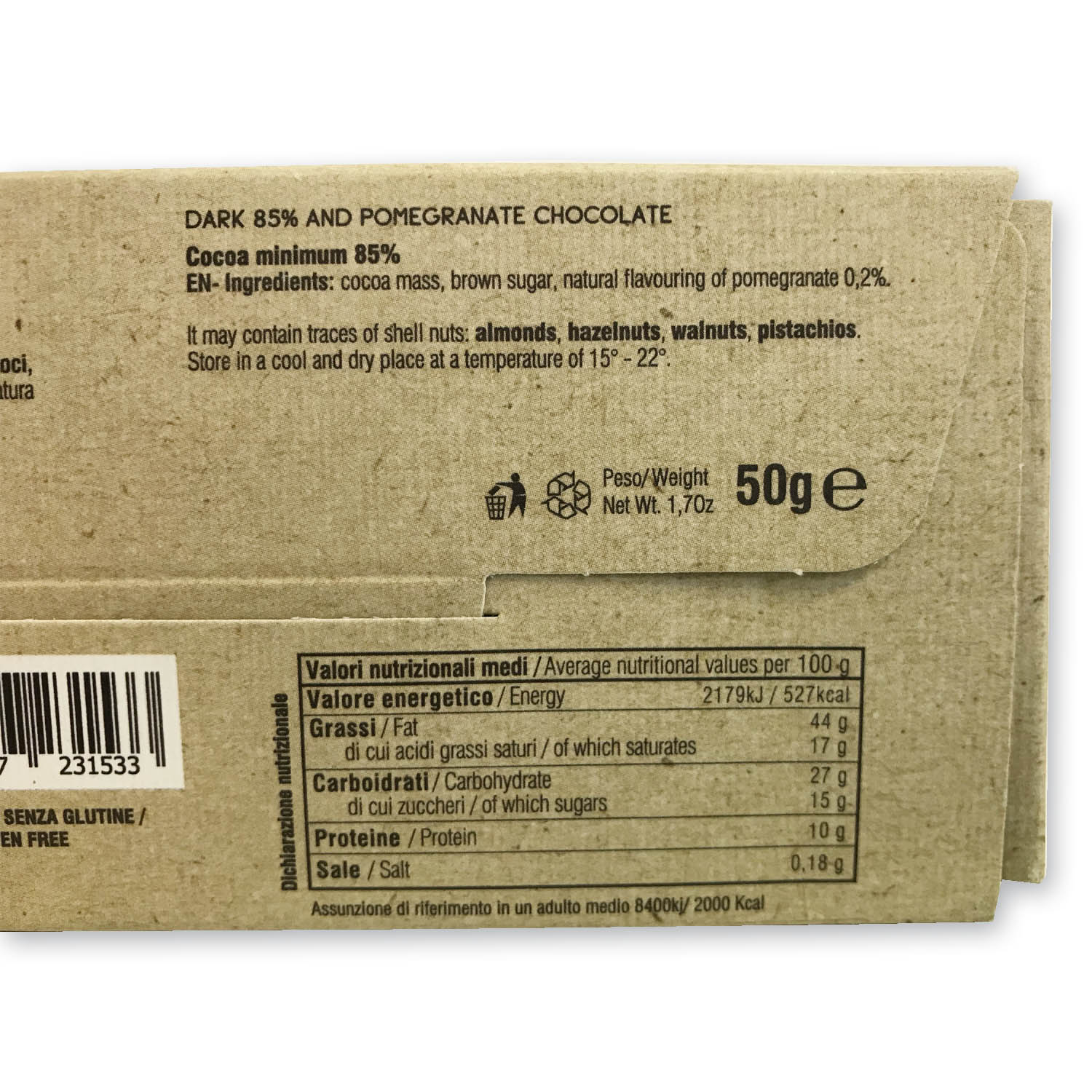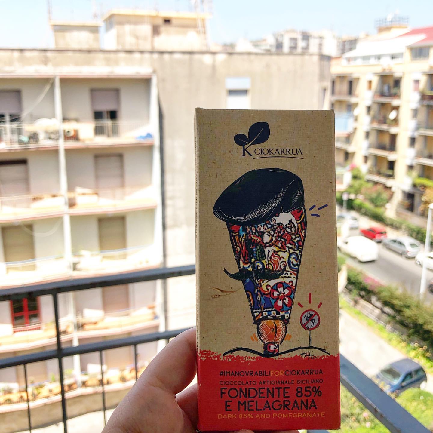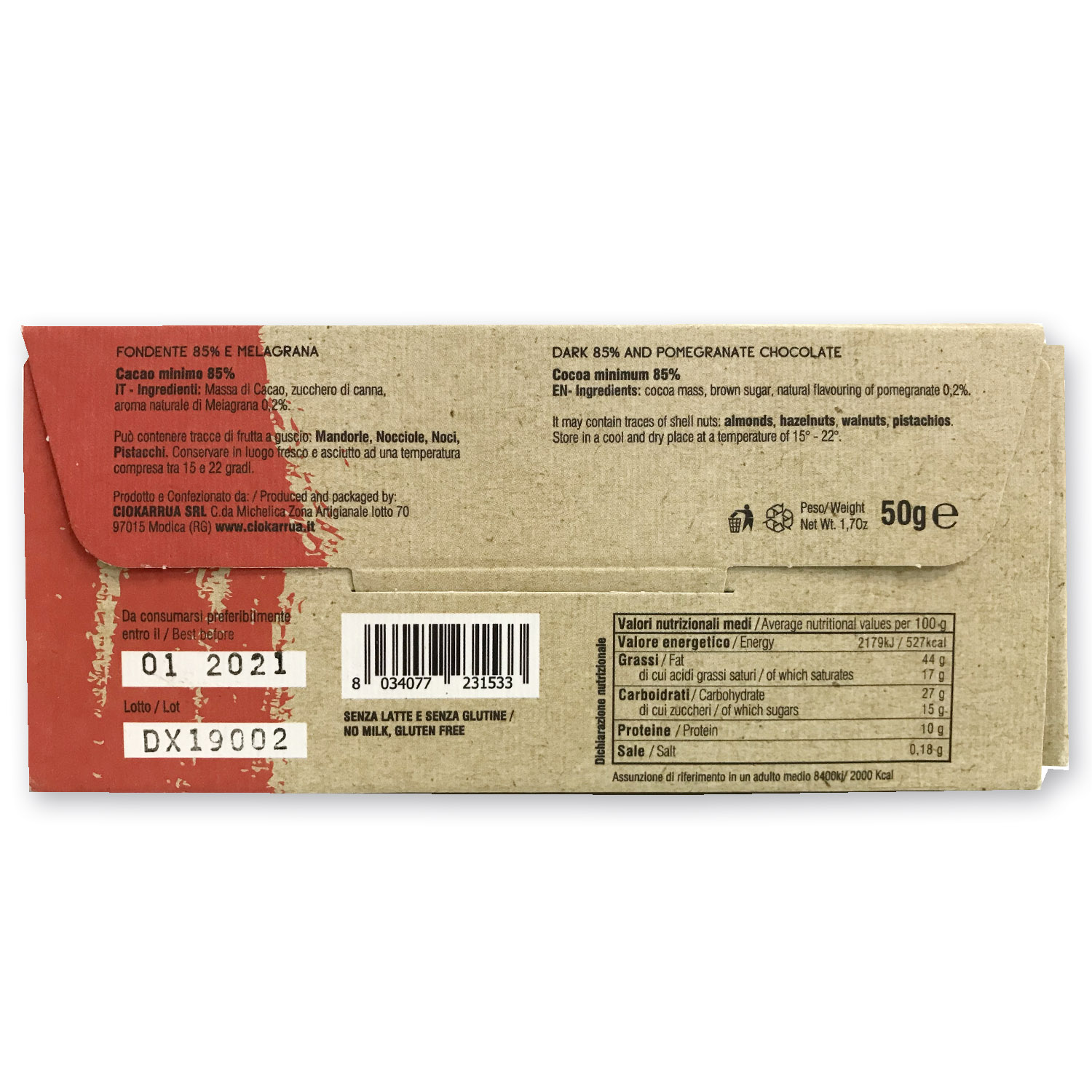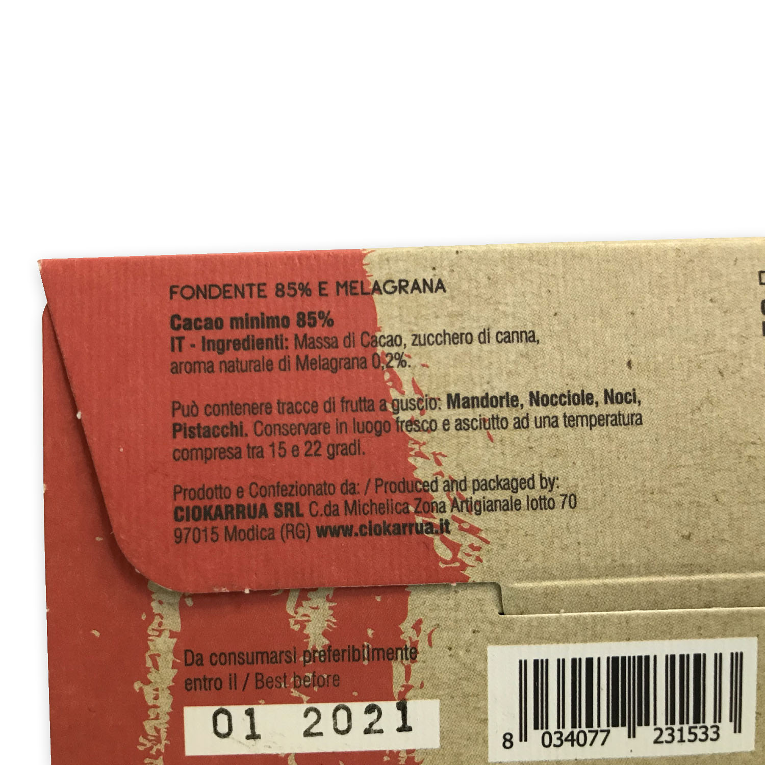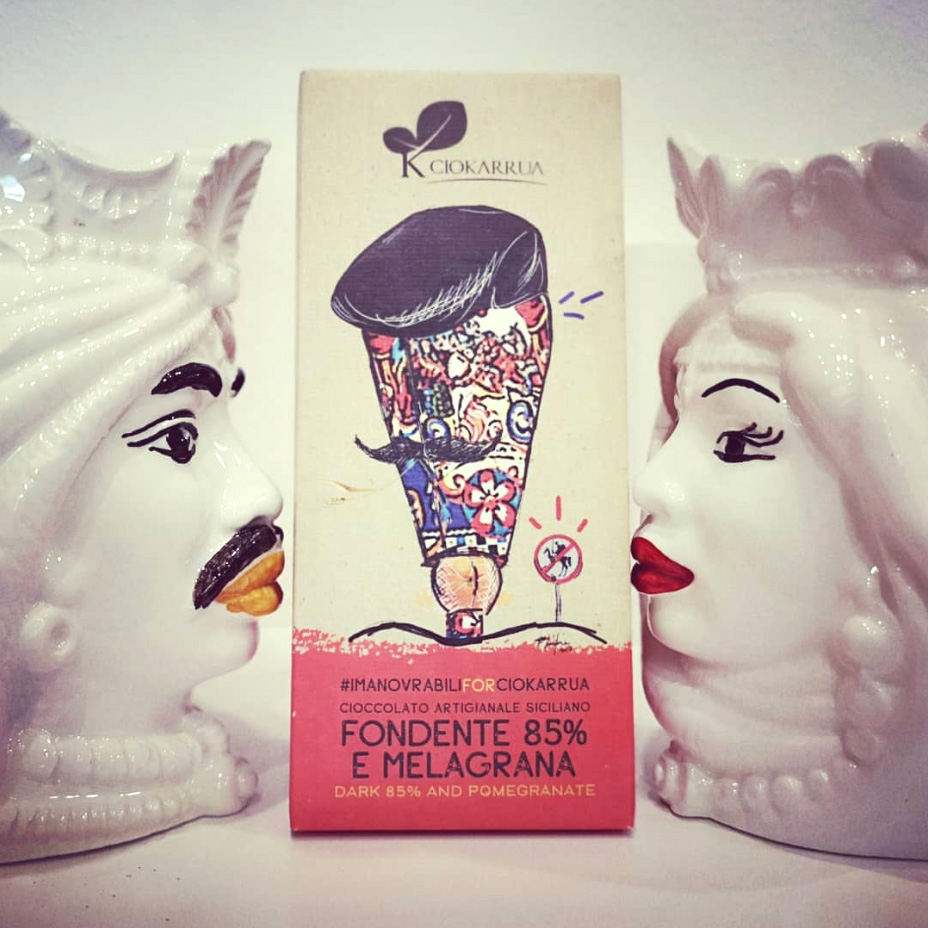 Cioccolato siciliano "i manovrabili" 85% e melagrana 50g - эксклюзивный сицилийский горький шоколад 85% какао с добавлением сочного ароматного граната в авторской, дизайнерской упаковке. Уникальное сочетание вкусов.