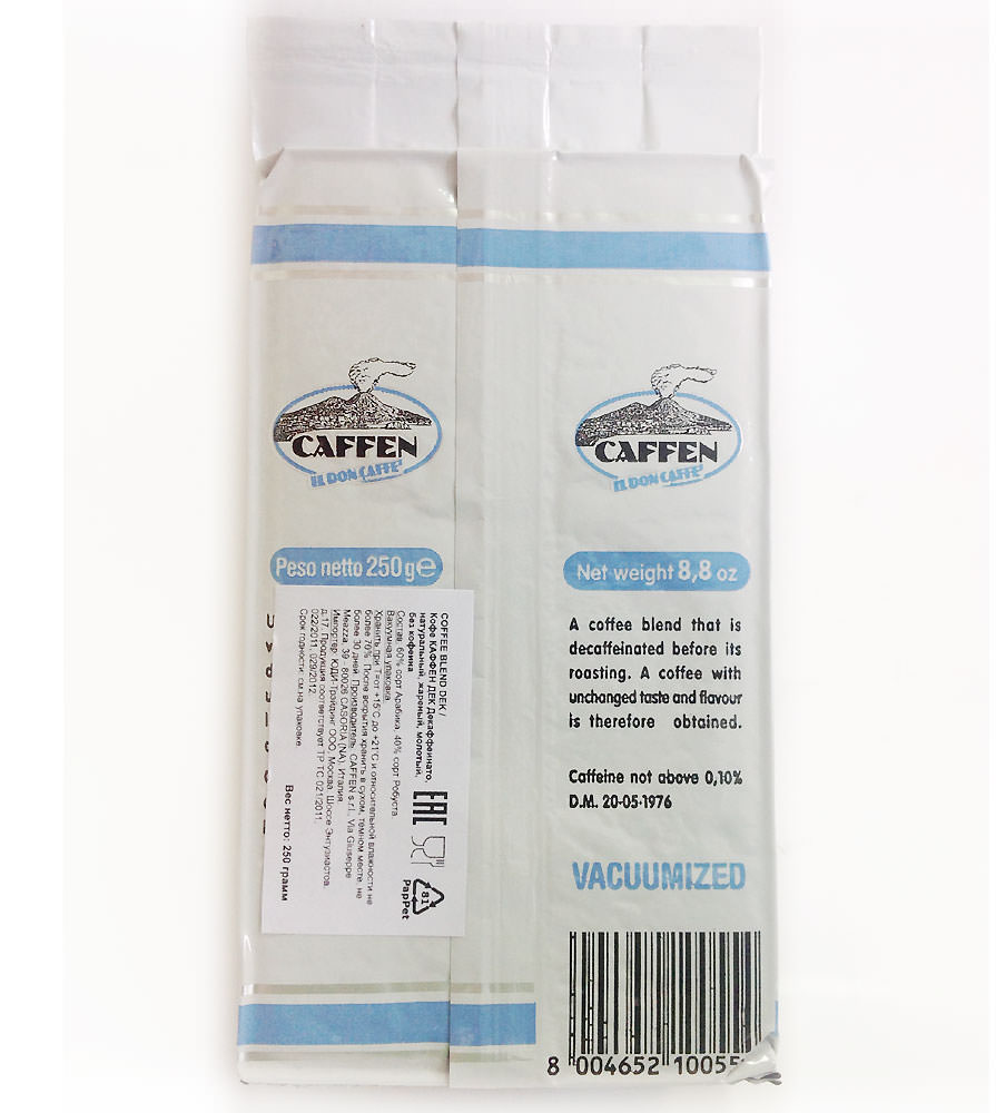 Бленд Dek (Decaffeinato) - отборные кофейные зерна, длительная обжарка дарят напитку привычный аромат неаполитанского кофе, а благодаря специальной естественной методики удаления кофеина из зерен, содержание кофеина не превышает 0,1%.