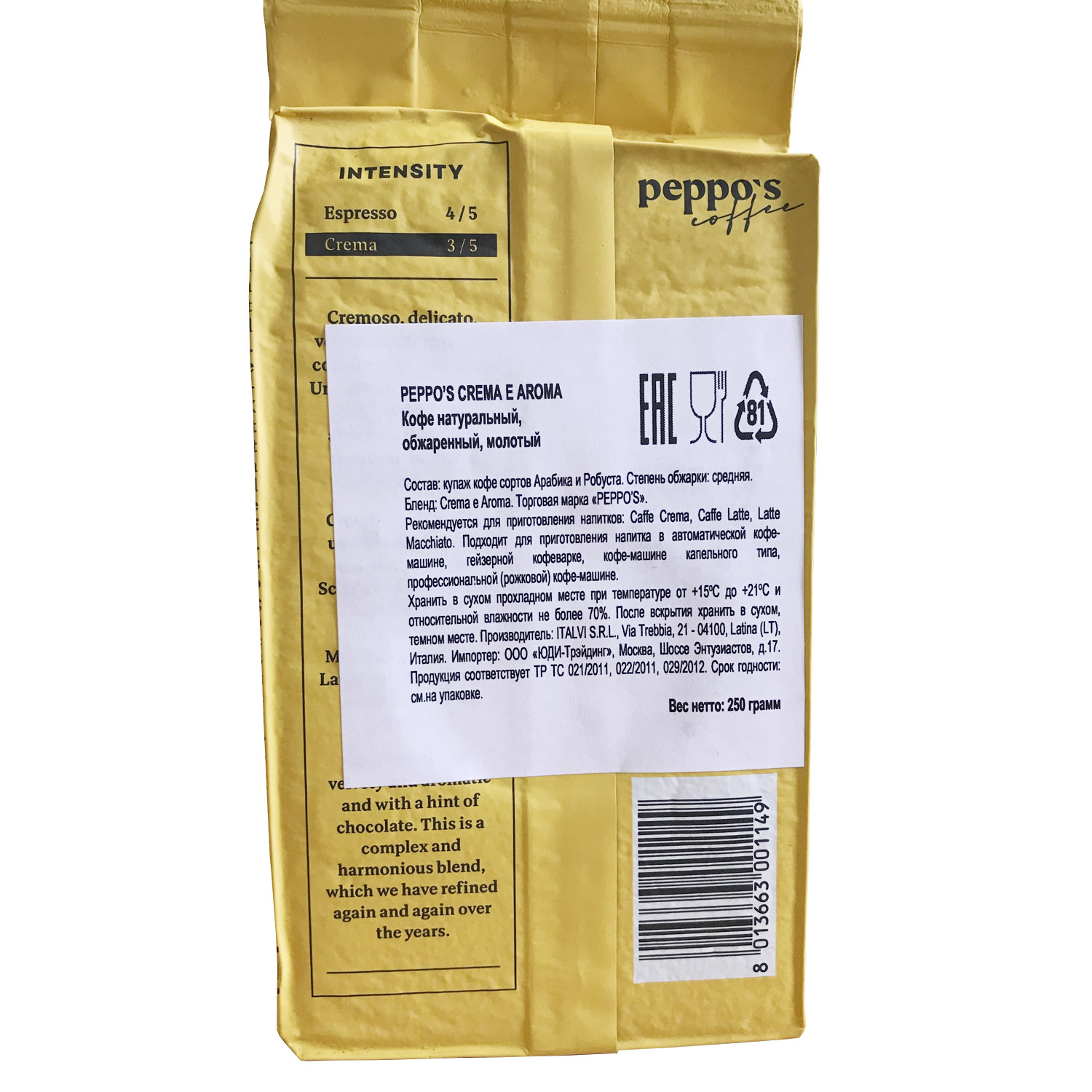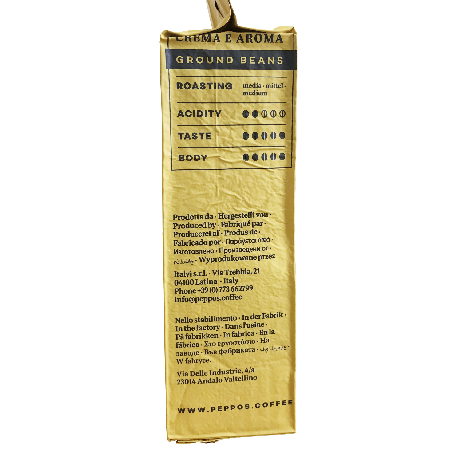Кофе Peppo's Crema e Aroma - сливочный, нежный, бархатистый и ароматный, с оттенком шоколада. Это сложный и гармоничная бленд, который фабрика совершенствует снова и снова на протяжении многих лет.