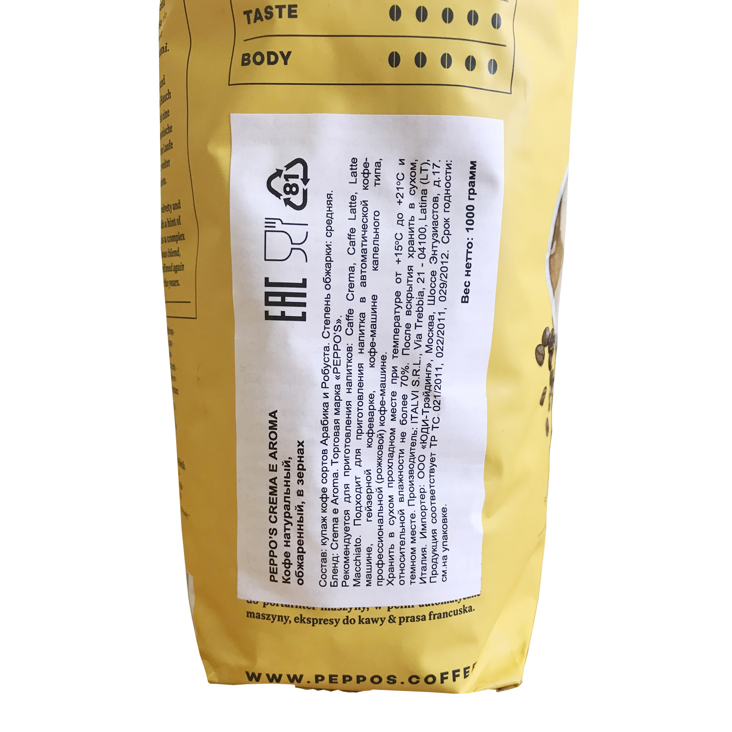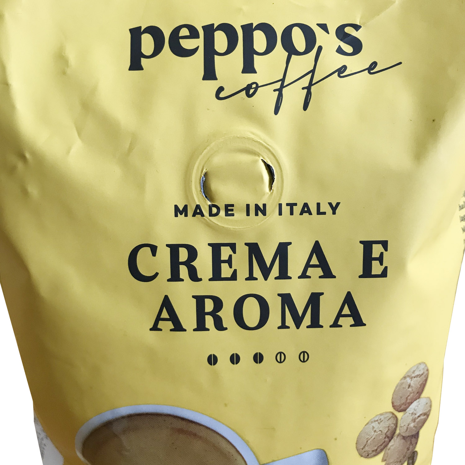Кофе Peppo's Crema e Aroma - сливочный, нежный, бархатистый и ароматный, с оттенком шоколада. Это сложный и гармоничная бленд, который фабрика совершенствует снова и снова на протяжении многих лет.