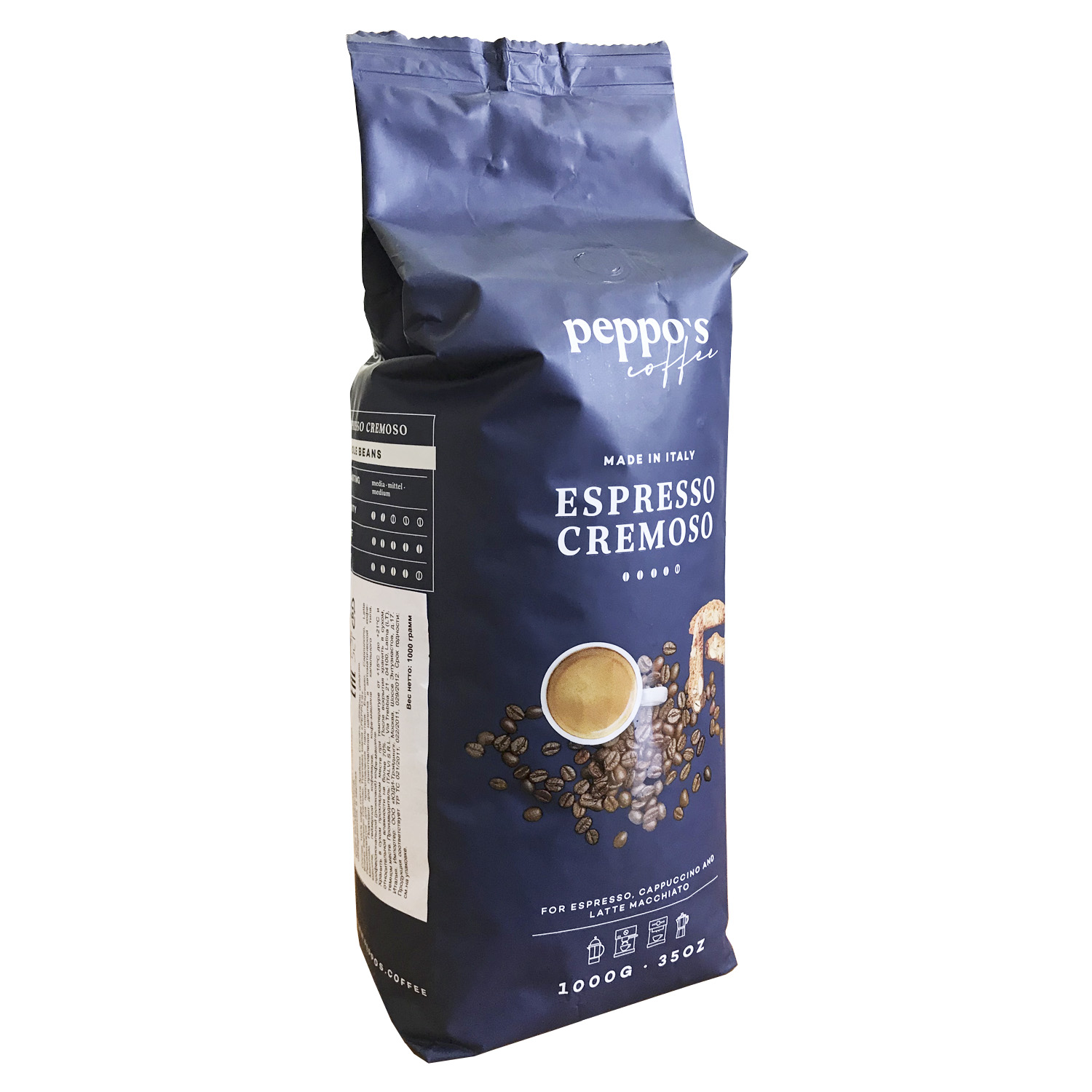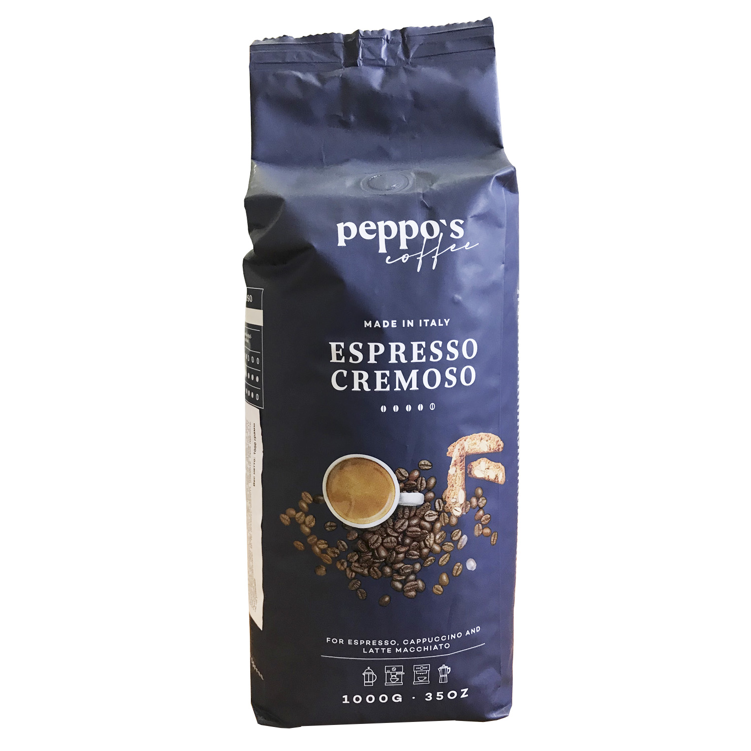 Кофе Peppo's Espresso Cremoso - классический бленд, обладающий характерным ароматом и сильным вкусом миндаля. Благодаря своей стойкой крема он следует лучшим традициям эспрессо.
