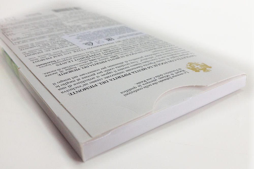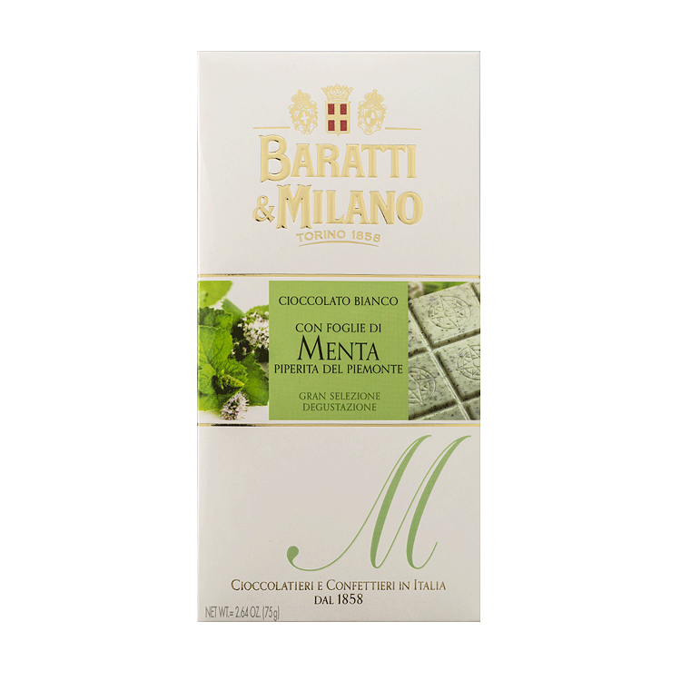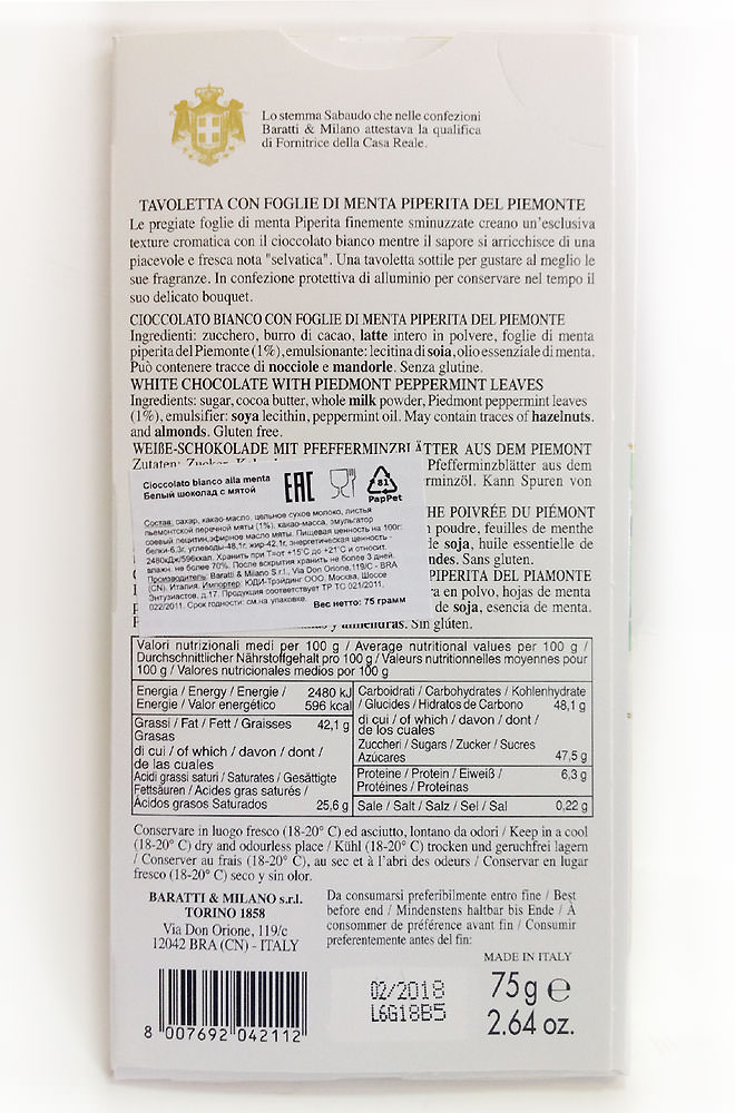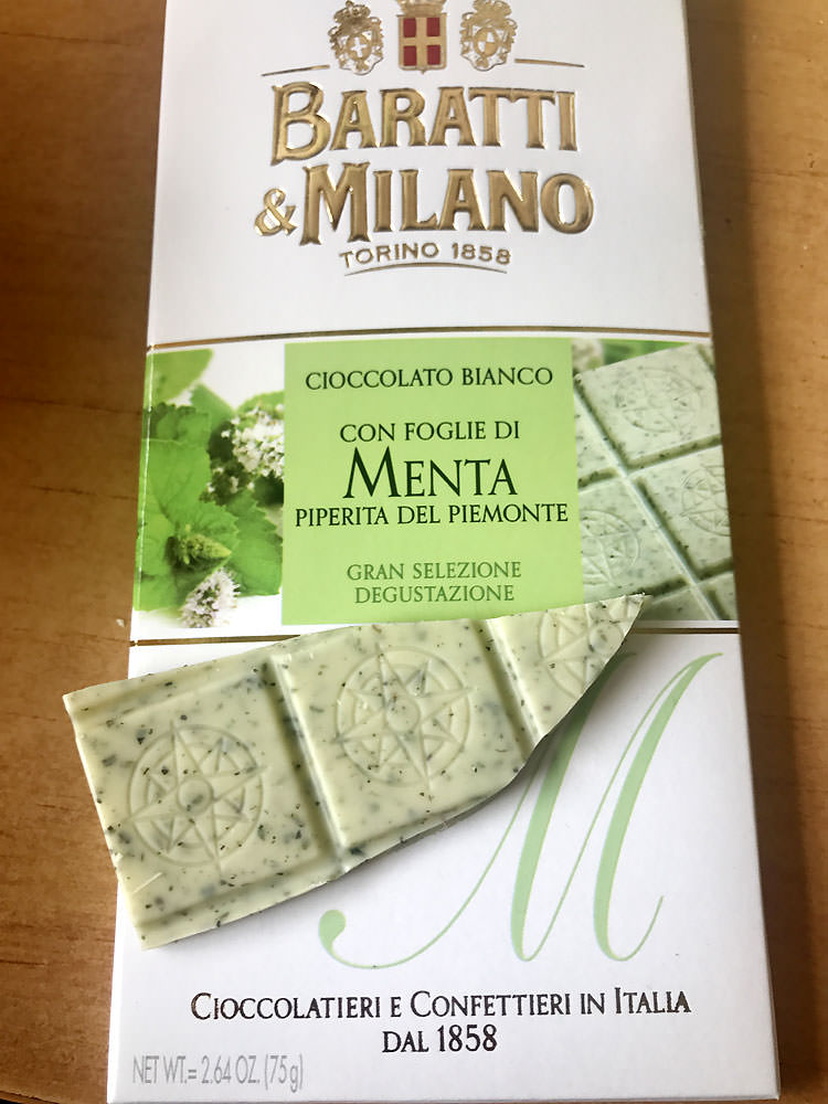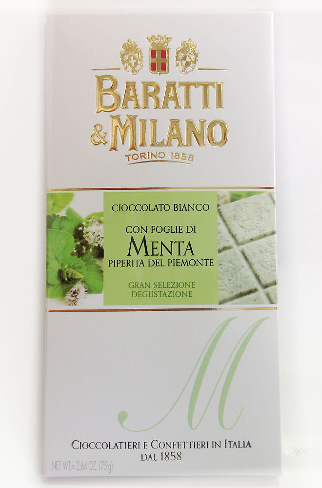 Cioccolato bianco alla menta - белый шоколад с добавлением листьев пьемонтской перечной мяты.