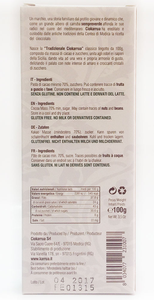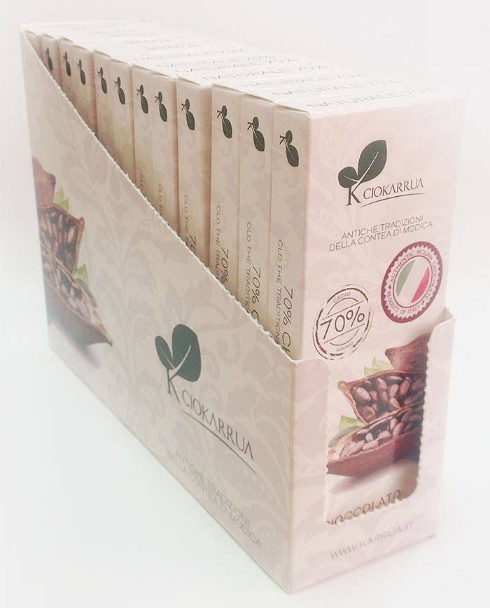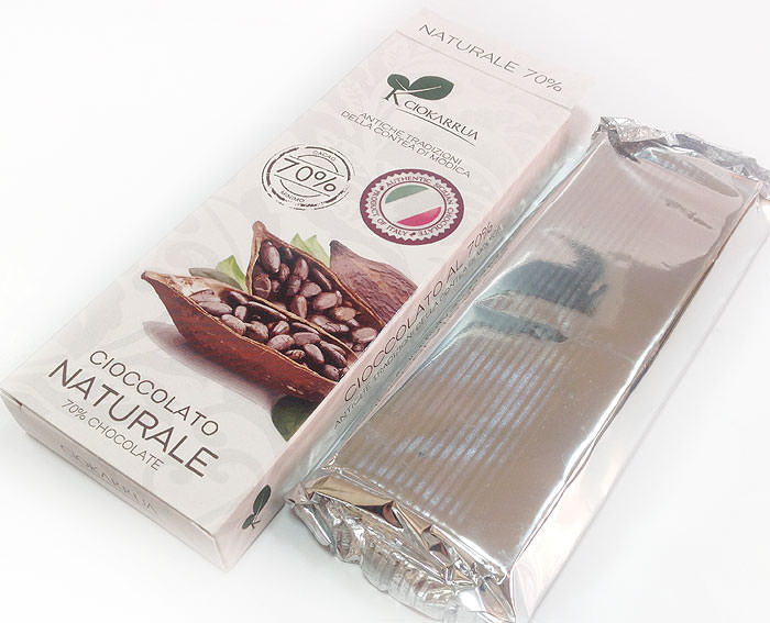 Cioccolato Puro 70 - для любителей "горького" шоколада. "Грубая" текстура шоколада, характерная для старинного "холодного" способа приготовления массы из какао-бобов.