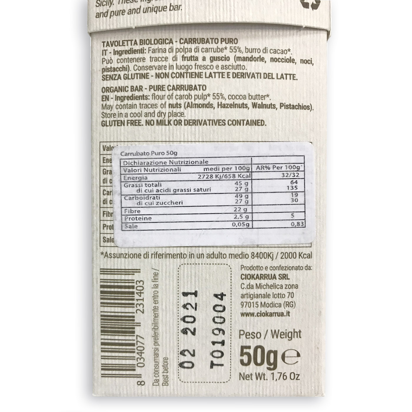 | Оригинальное наименование | TAVOLETTA BIOLOGICA - CARRUBATO PURO 50g |
