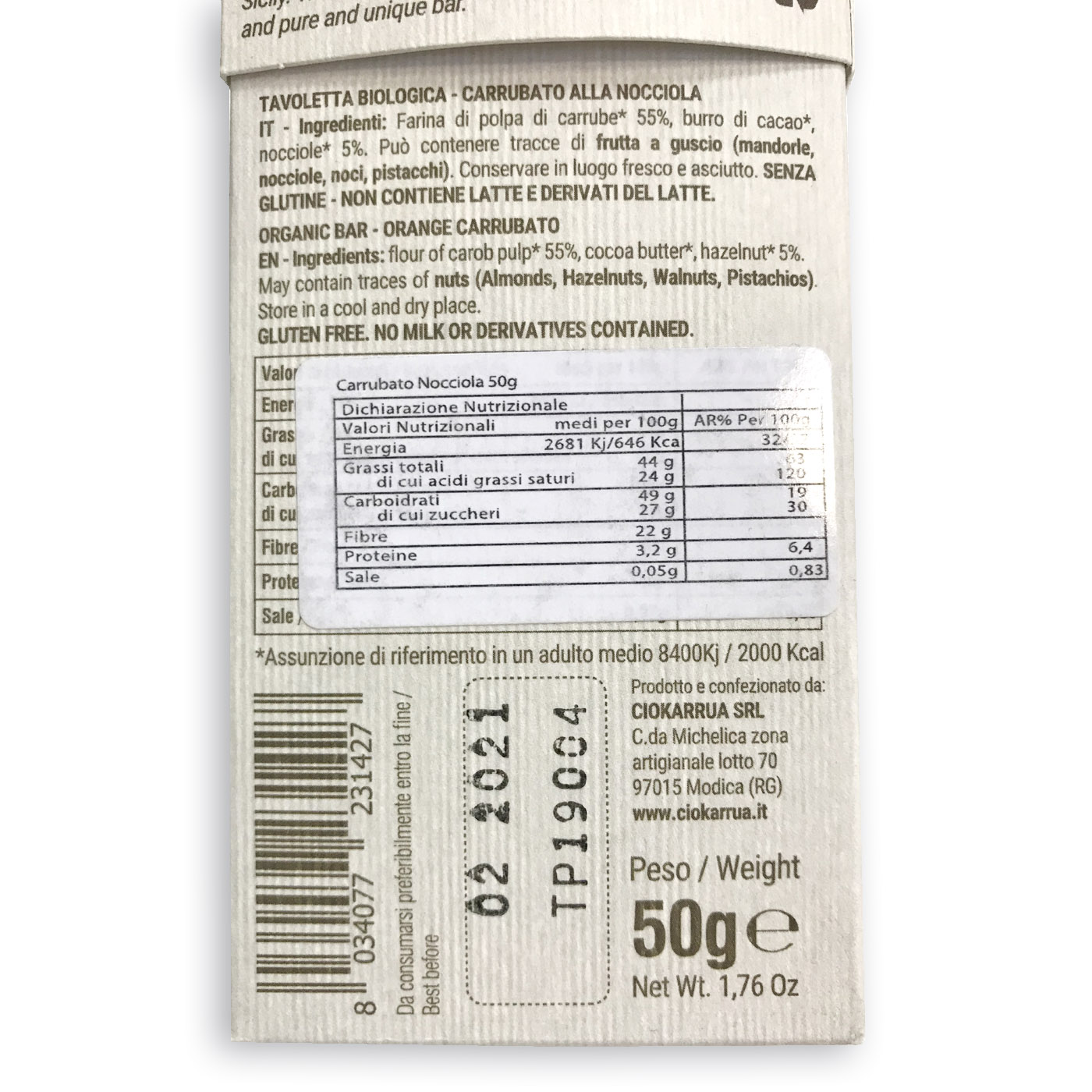 | Оригинальное наименование | TAVOLETTA BIOLOGICA - CARRUBATO ALLA NOCCIOLA 50g |