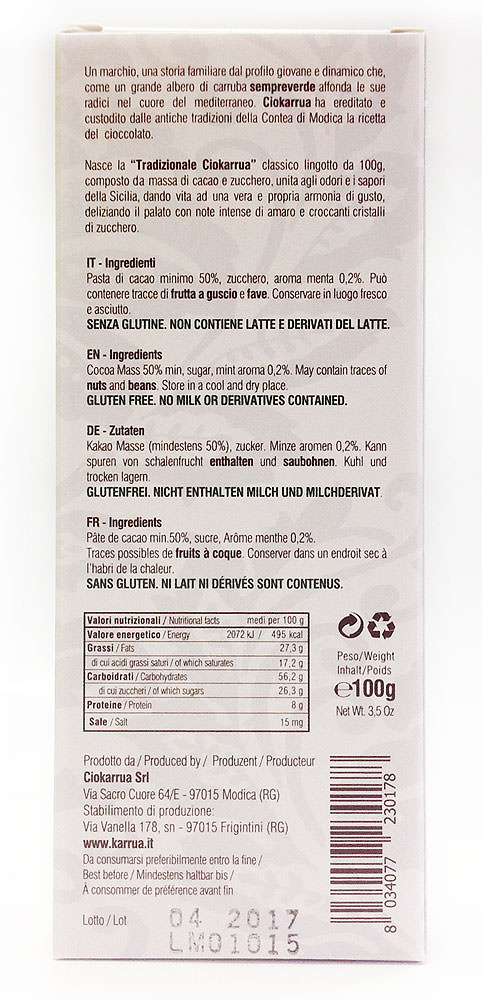 Cioccolato alla Menta - мятная свежесть и шоколад, изысканное сочетание. "Грубая" текстура шоколада, характерная для старинного "холодного" способа приготовления массы из какао-бобов.