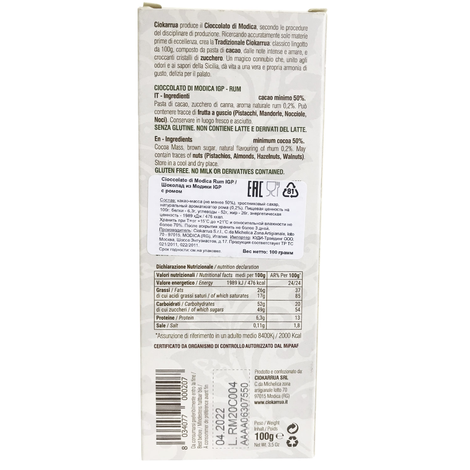 Шоколад с ромом из Модики IGP