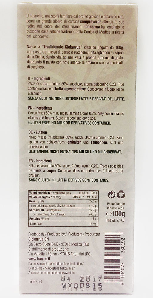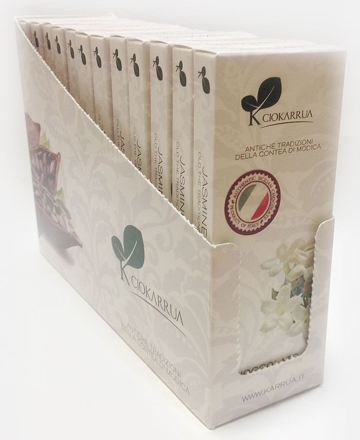 Cioccolato al Gelsomino - шоколад с жасмином - тонкий и неповторимый вкус. "Грубая" текстура шоколада, характерная для старинного "холодного" способа приготовления массы из какао-бобов.