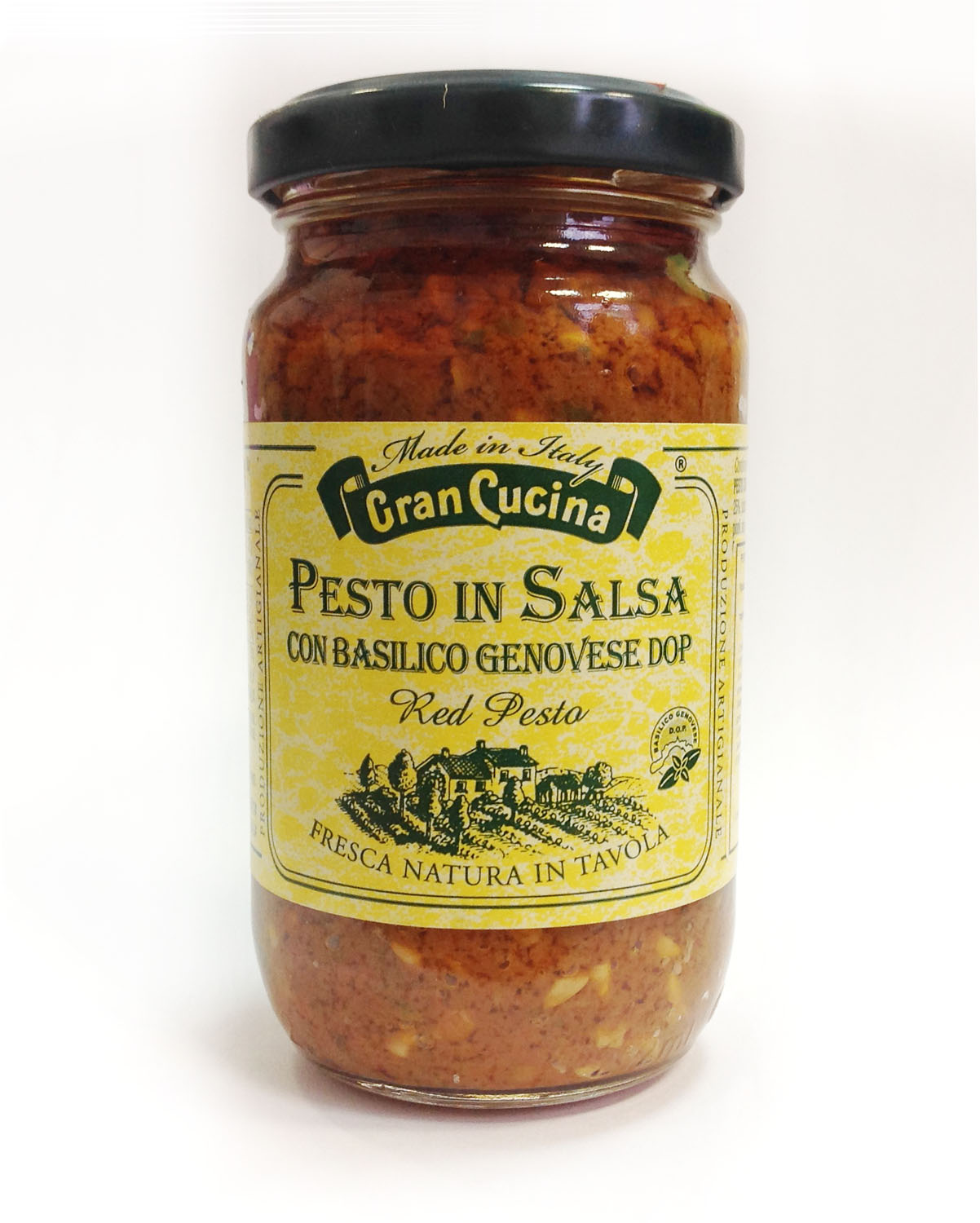 Красный песто DOP. Любимый песто по-генуэзски с добавлением вяленых томатов – это идеальное сочетание любимых ингредиентов, подходящих для любого блюда: в качестве заправки к пасте, в качестве начинки для овощны и мясных рулетиков или просто для создания канапе и закусок.