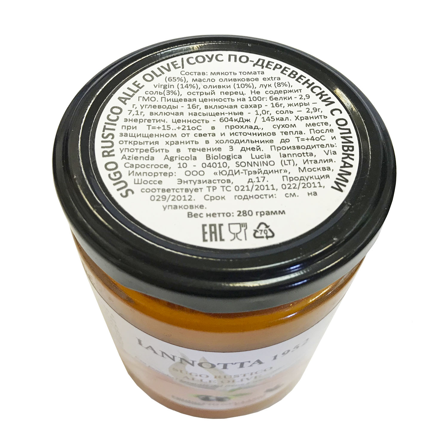 Серия готовых "деревенских соусов" - это домашние соусы, домашний рецепт - как итальянцы делают пассату себе или для домашних заготовок; соус существенно отличается по консистенции и цвету от коммерческих продуктов. Соус по-деревенски с оливками (в соусе присутствует целая оливка, без косточки) имеет достаточно яркий цвет, поскольку для его изготовления используются, в том числе, желтые томаты, и сами томаты блендируются вместе с семечками - это традиционный рецепт региона Лацио. Такой способ изготовления дает больше витаминов и более густую консистенцию. Классическое сочетание: спагетти с томатным соусом.