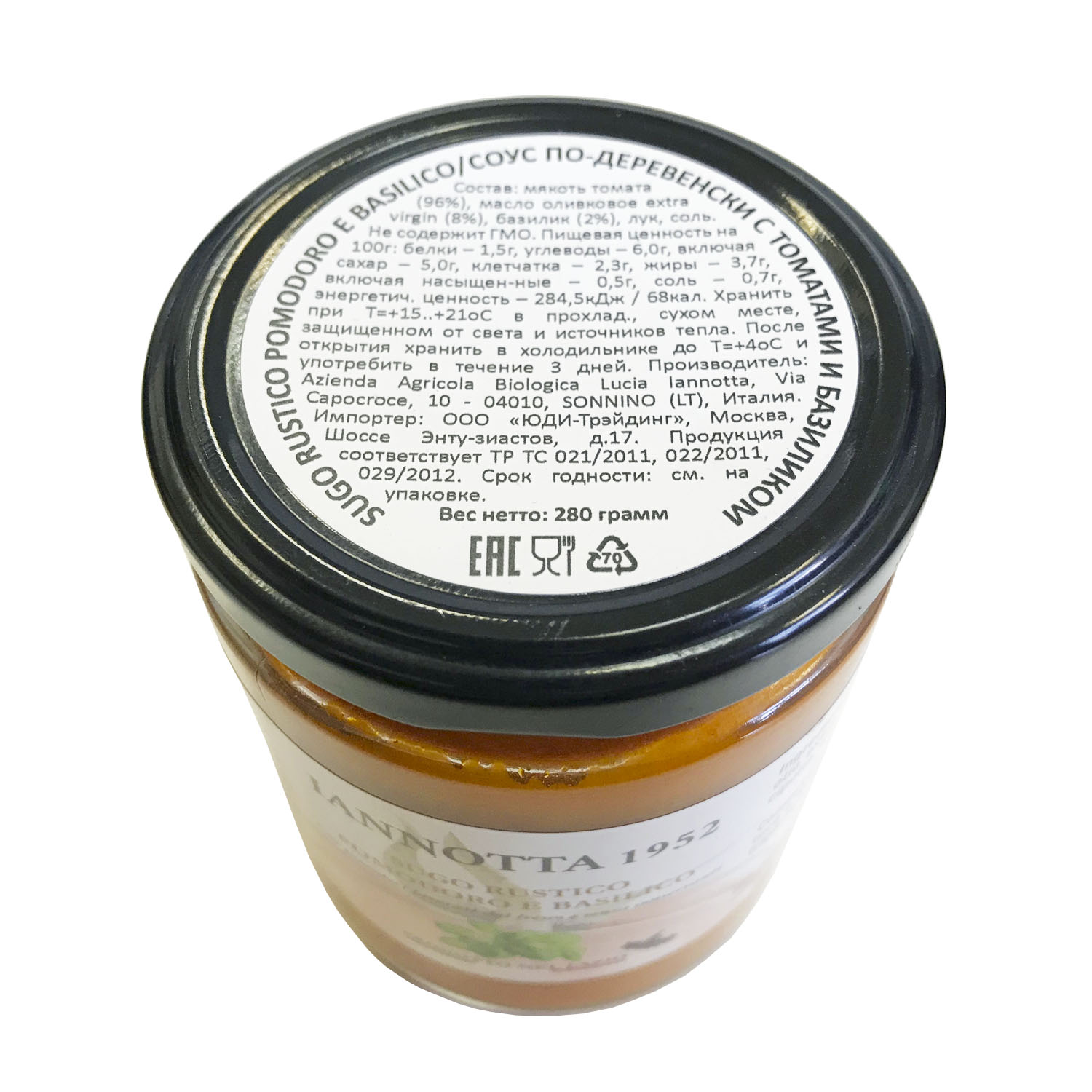 Серия готовых "деревенских соусов" - это домашние соусы, домашний рецепт - как итальянцы делают пассату себе или для домашних заготовок; соус существенно отличается по консистенции и цвету от коммерческих продуктов. Соус по-деревенски с жареным луком, томатами, базиликом (в соусе присутствует целые листики базилика) имеет достаточно яркий цвет, поскольку для его изготовления используются, в том числе, желтые томаты, и сами томаты блендируются вместе с семечками - это традиционный рецепт региона Лацио. Такой способ изготовления дает больше витаминов и более густую консистенцию. Классическое сочетание: спагетти с томатным соусом.