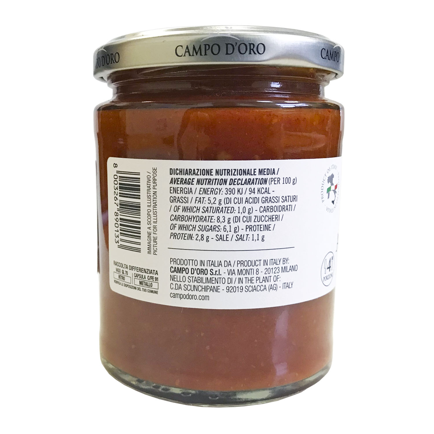 SUGO ARRABBIATA CON RAGUSANO DOP / Острый соус арраббьята с сицилийским сыром Рагузано - томатный соус из свежесобранных томатов с добавлением сыра "Ragusano DOP", который придает соусу выраженный вкус и решительный характер.