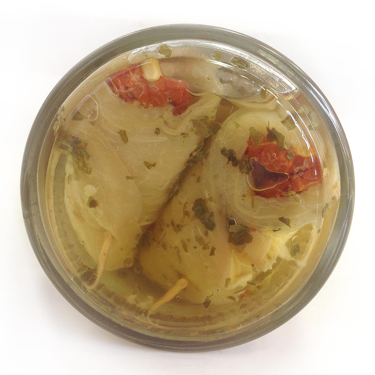 Аппетитные рулетики из отборных баклажанов, высушенных под жарким апулийским солнцем, с начинкой из тунца и каперсов, станут прекрасной закуской, аперитивом или же гарниром к мясу или рыбе.