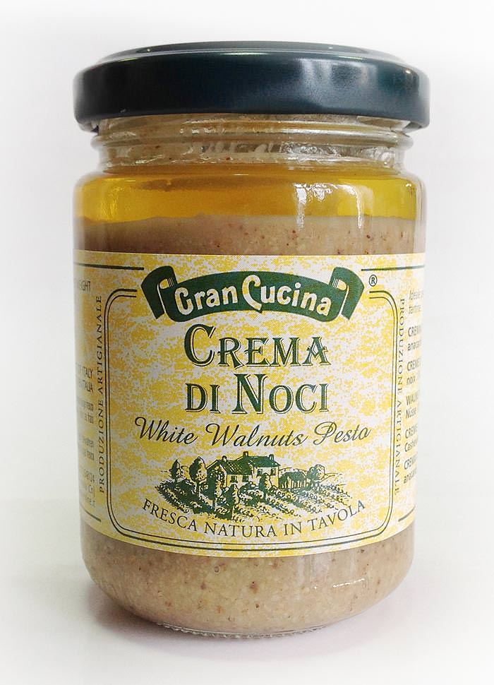 Крем-песто из грецкого ореха - настоящая амброзия для любителей орехов. Крем настолько универсальный и гармоничный по вкусу, что подходит как для основных блюд, так и для десертов. Попробуйте сделать пасту с песто из орехов или нафаршировать куриную грудку ореховым кремом, а может быть кому то понравится идея блинчиков с ореховым песто на завтрак... вариантов много - осталось включить фантазию!