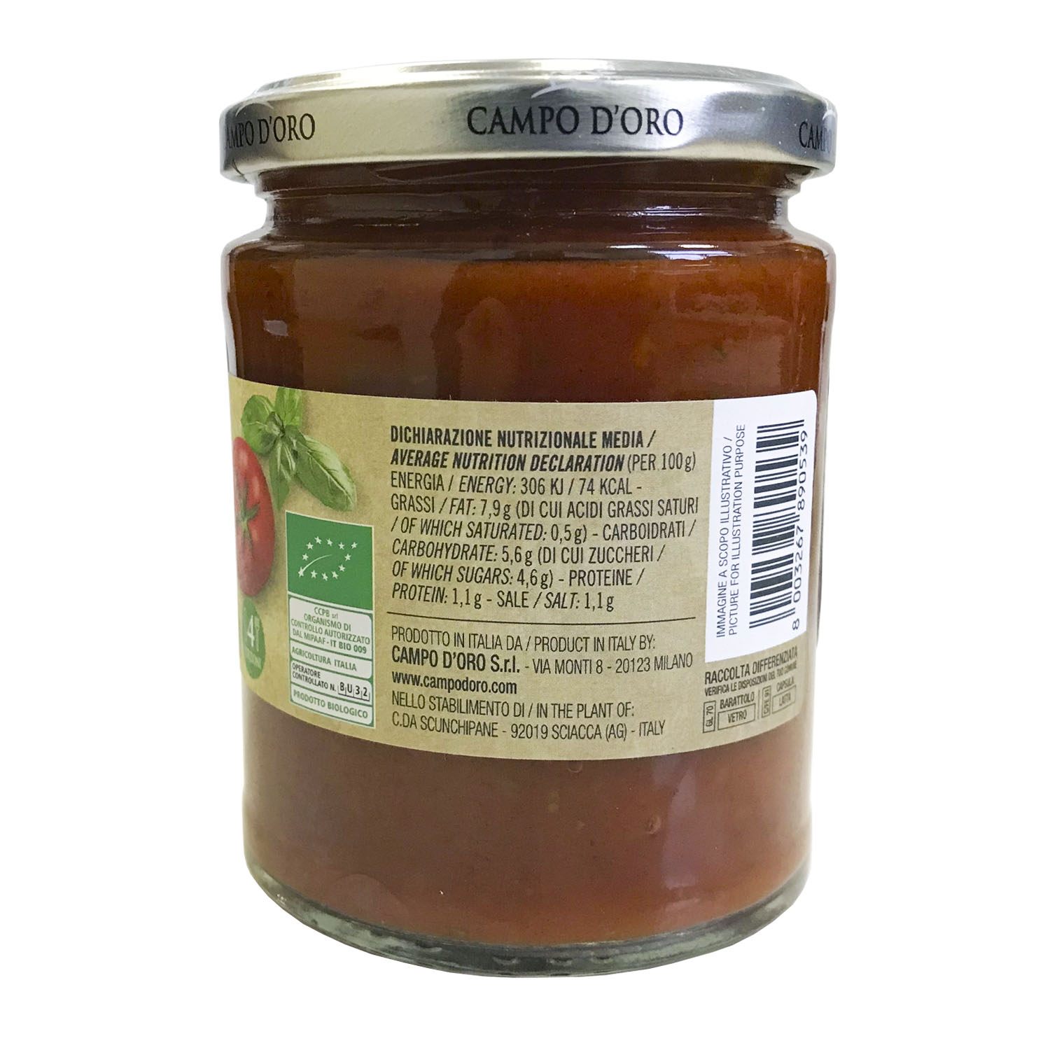 SUGO AL BASILICO BIOLOGICO / Соус с базиликом БИО - томатный соус из свежесобранных томатов с добавлением отборного базилика для придания соусу уникального вкуса.