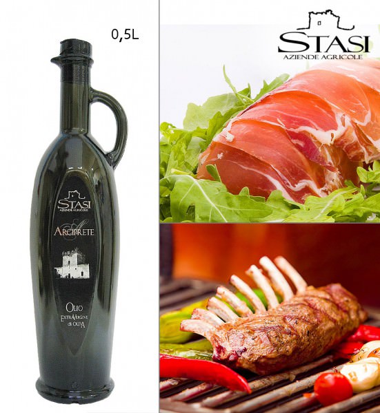 “Арчипрете” в переводе с итальянского означает «протоиерей, настоятель храма». Уникальная изысканная комбинация шести местных сортов оливок leccino, сarolea, biancolilla, nocellara, messinese, ogliarola salentina.