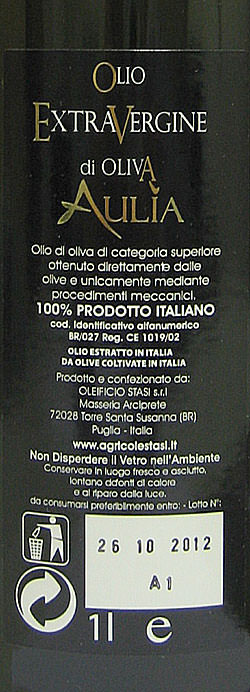 Органолептическая оценка масла "Аулия": букет средней интенсивности, вкус консистентный, умеренно терпкое. Рекомендуется для ежедневного употребления. Сочетание с блюдами: овощное рагу, овощные салаты, горячие блюда с овощами, рыба на гриле, сыры средней выдержанности.