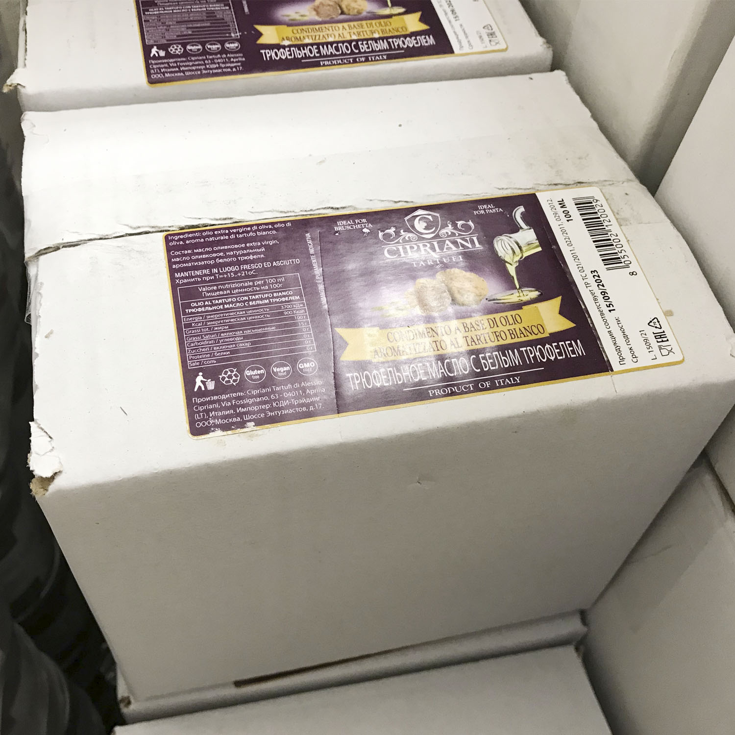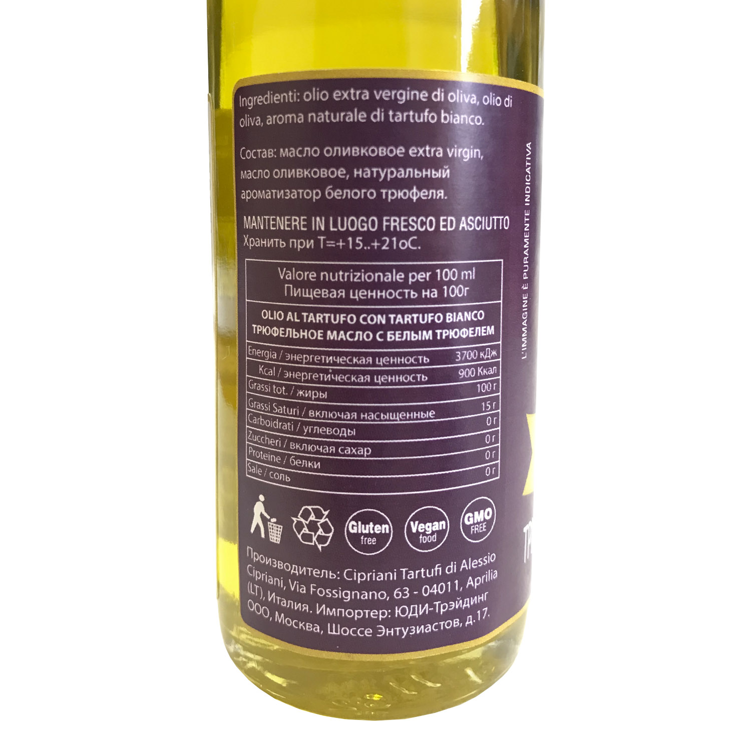 Трюфельное масло al tartufo bianco - оливковое масло с белым трюфелем. Добавление небольшого количества трюфельного масла подарит неповторимый аромат любому вашему блюда, включая пасту, брускетту, мясо или рыбу.