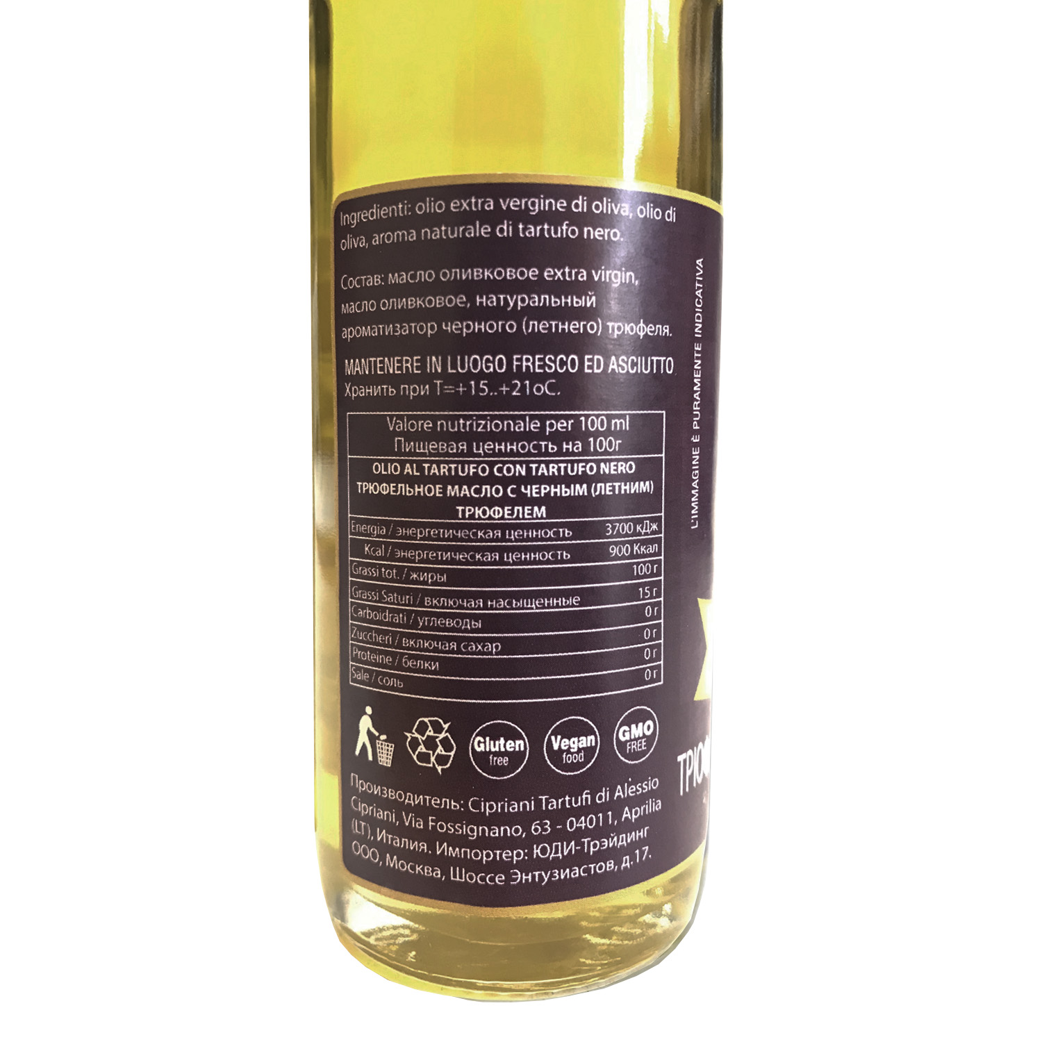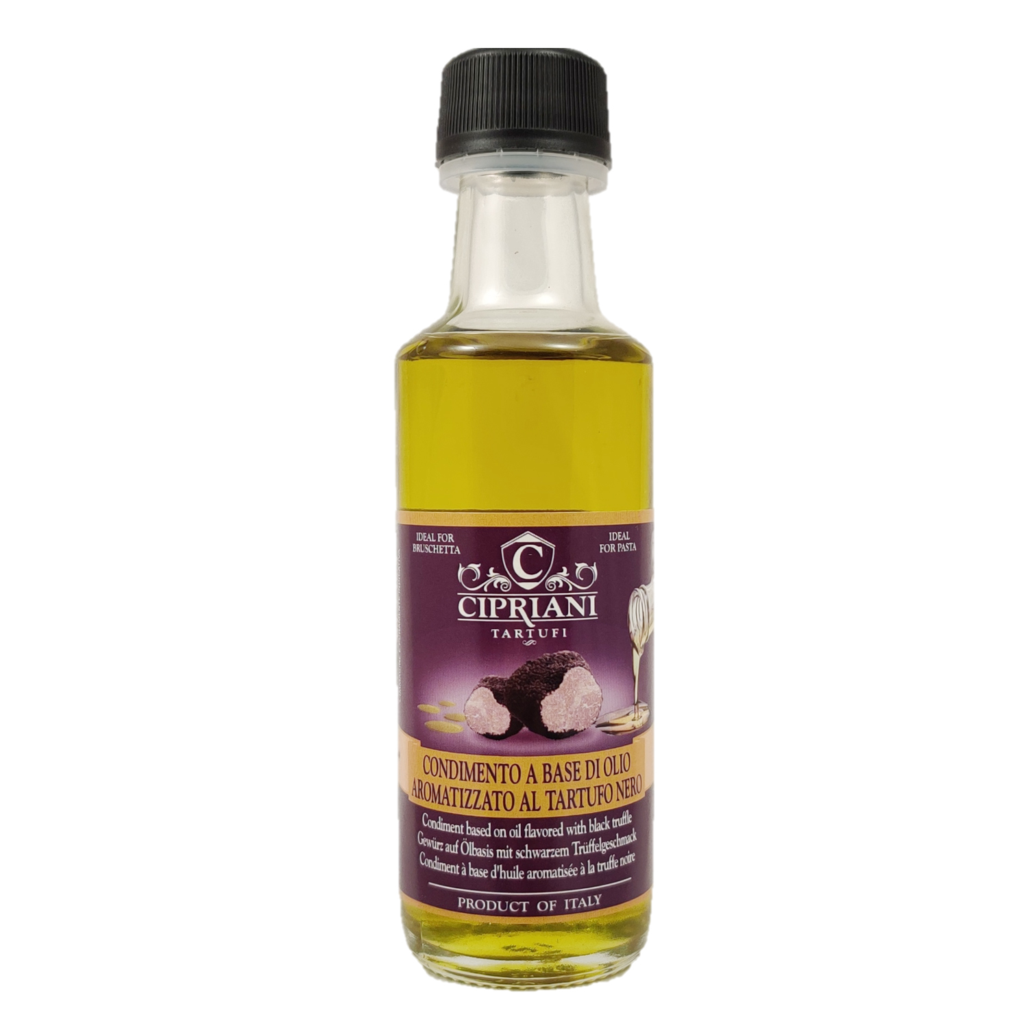 Трюфельное масло al tartufo nero - оливковое масло с черным (летним) трюфелем. Добавление небольшого количества трюфельного масла подарит неповторимый аромат любому вашему блюда, включая пасту, брускетту, мясо или рыбу.