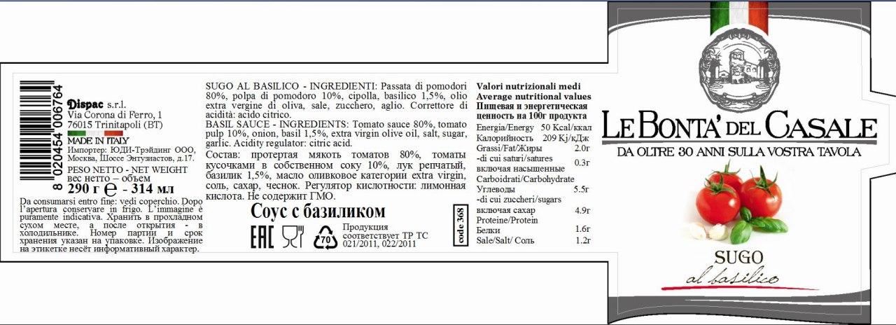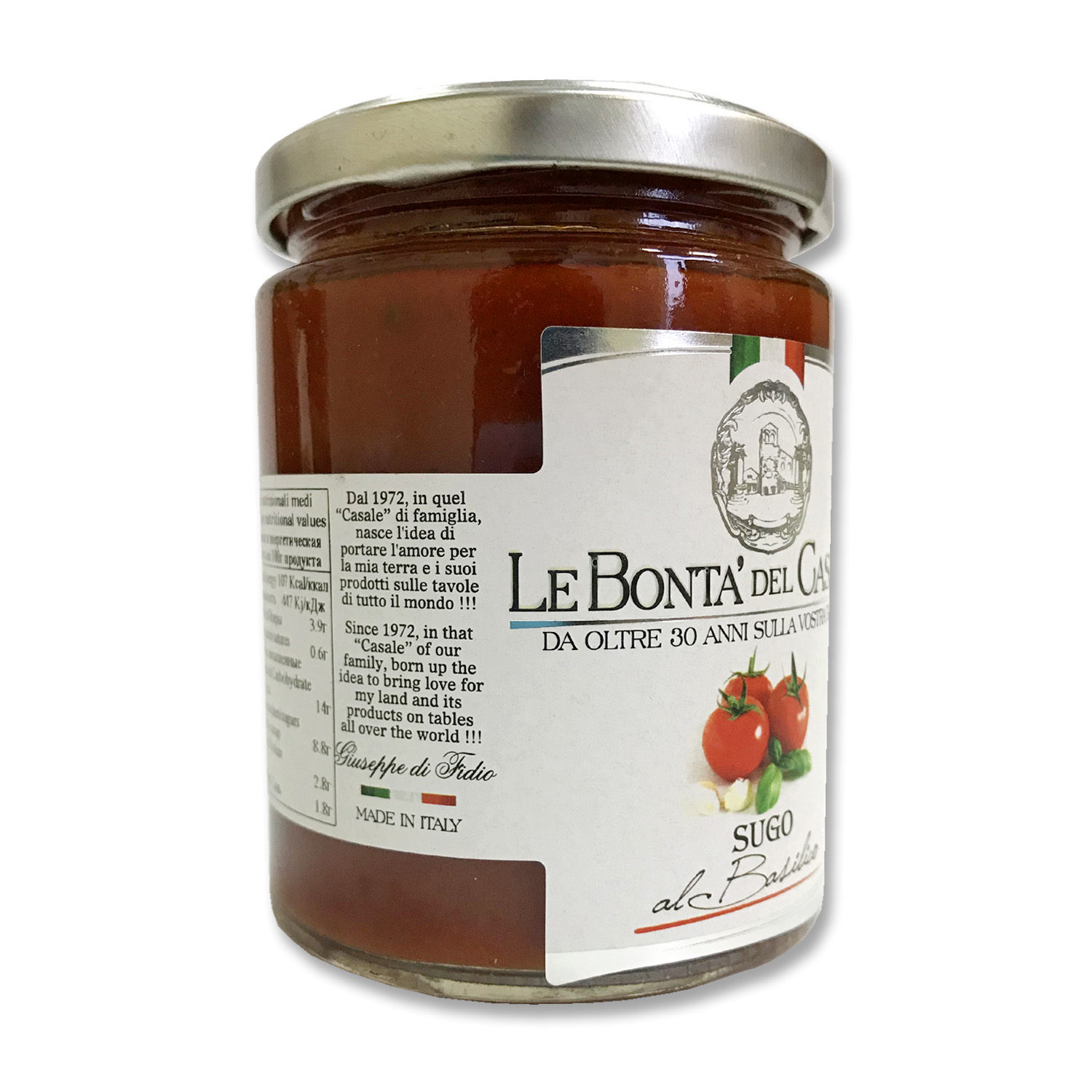 Классический соус с базиликом на основе мякоти томатов. Относится к категории Sugo pronti, то есть "готовый соус". Однако для полноценного раскрытия его вкуса и аромата базилика, рекомендуем слегка прогреть соус на сковороде и добавить прямо в сковороду только что сваренную пасту (макароны). Распределить соус по пасте и можно подавать. Классическое сочетание: спагетти с соусом из базилика.