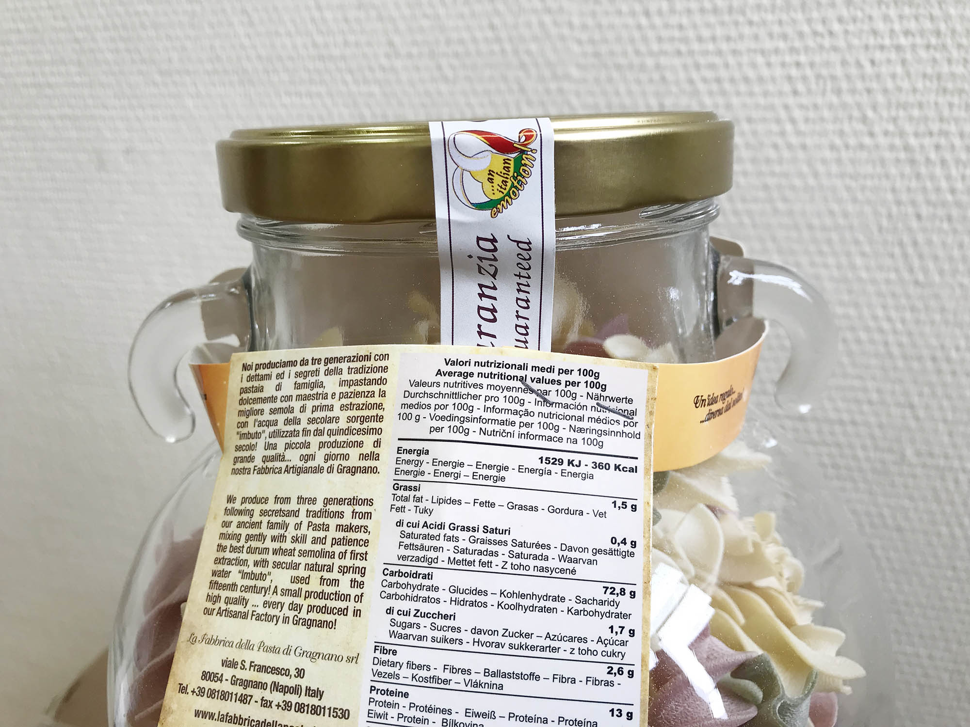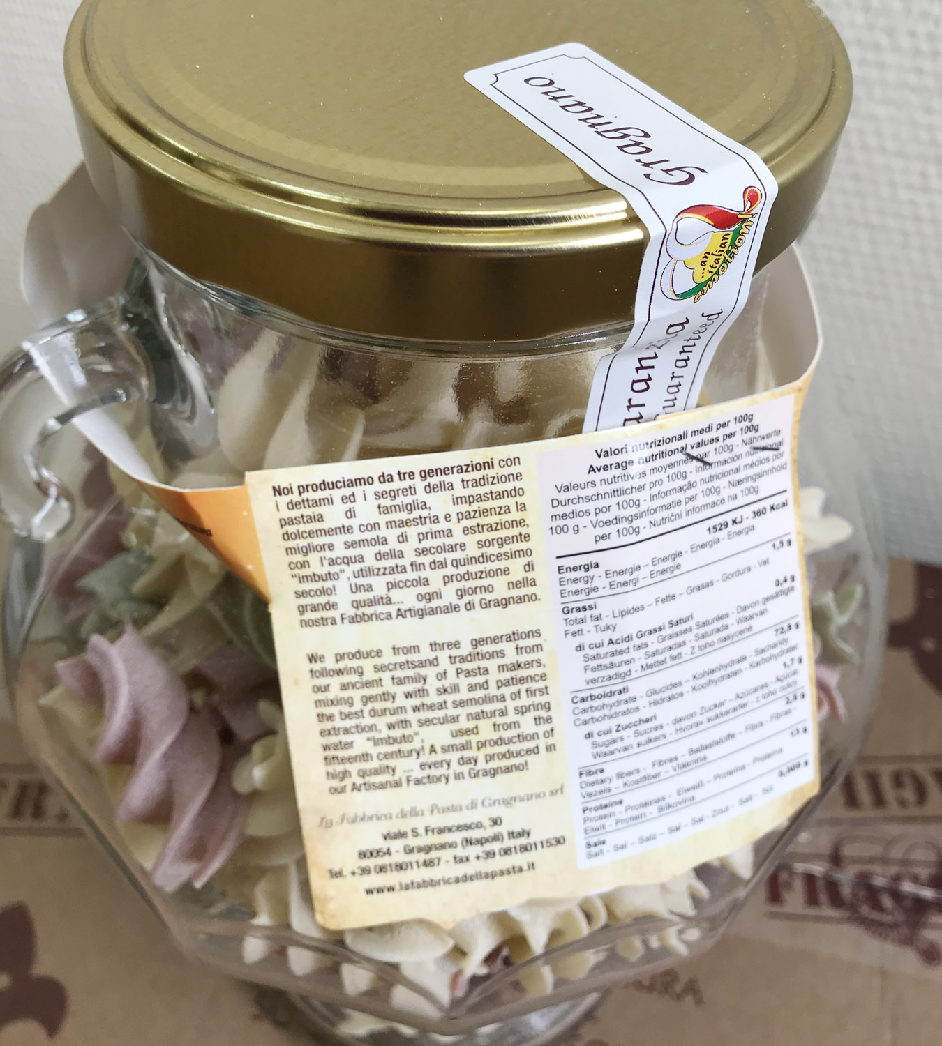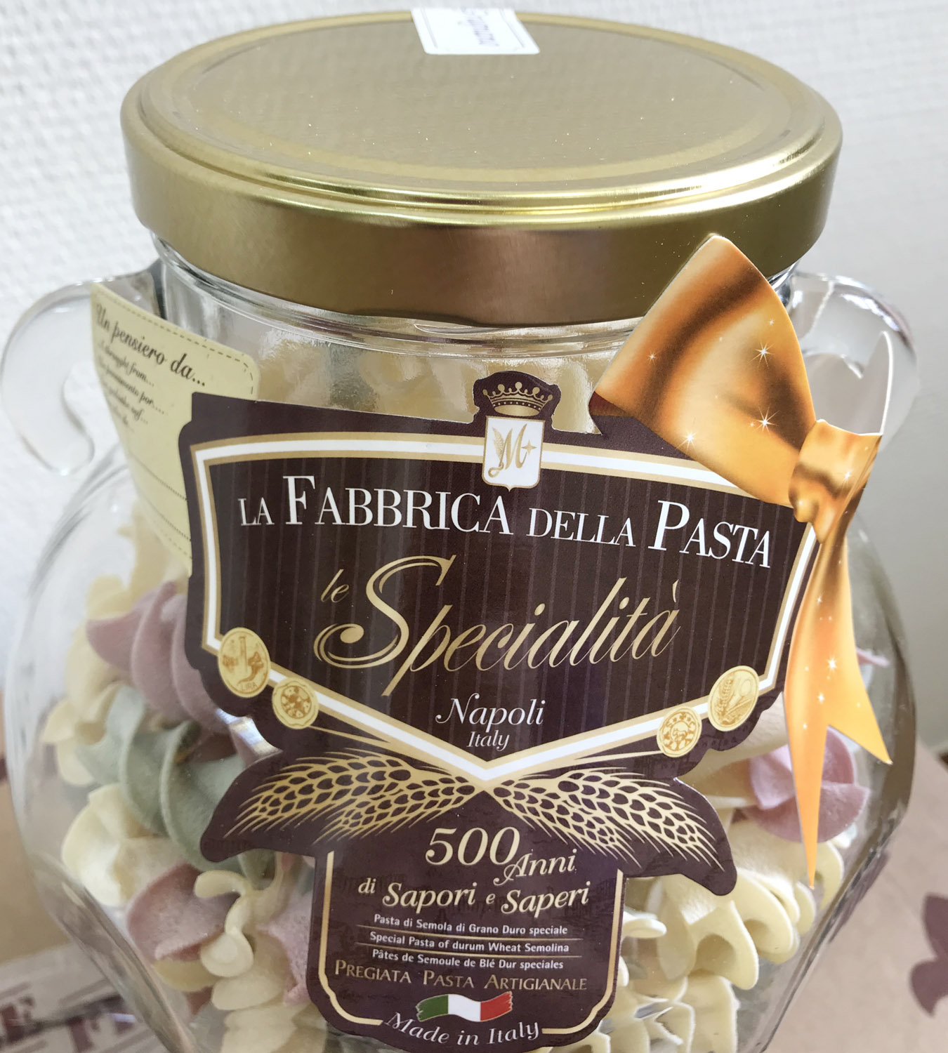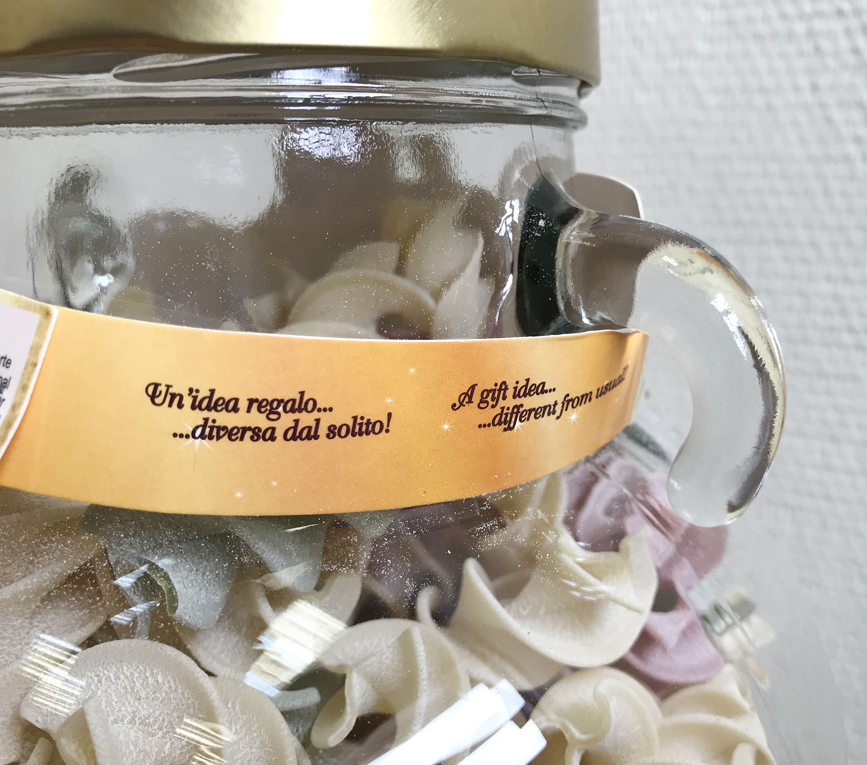 Подарочный набор "Амфора" состоит из стеклянной амфоры, изготовленной в старинном стиле с винтовой крышкой, заполненной трёхцветной пастой Tricolore различных форм. Необычный, приятный подарок и амфора потом пригодится :)