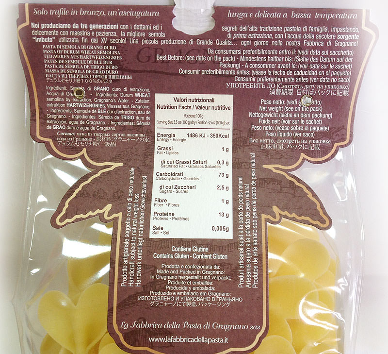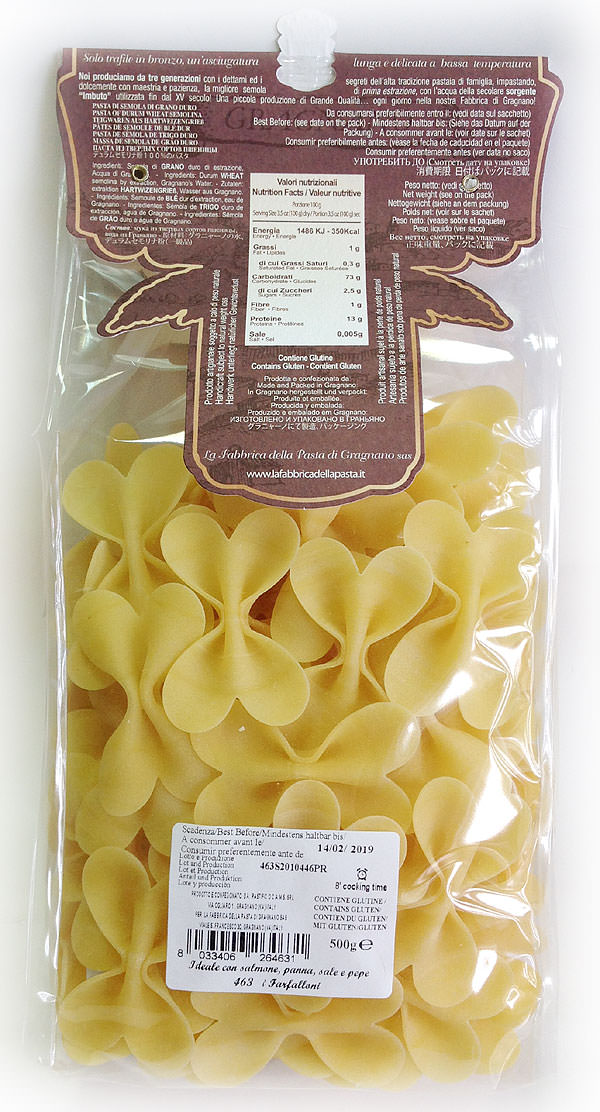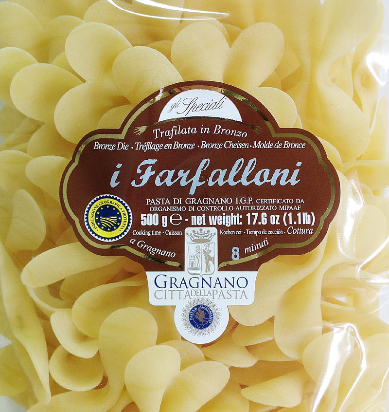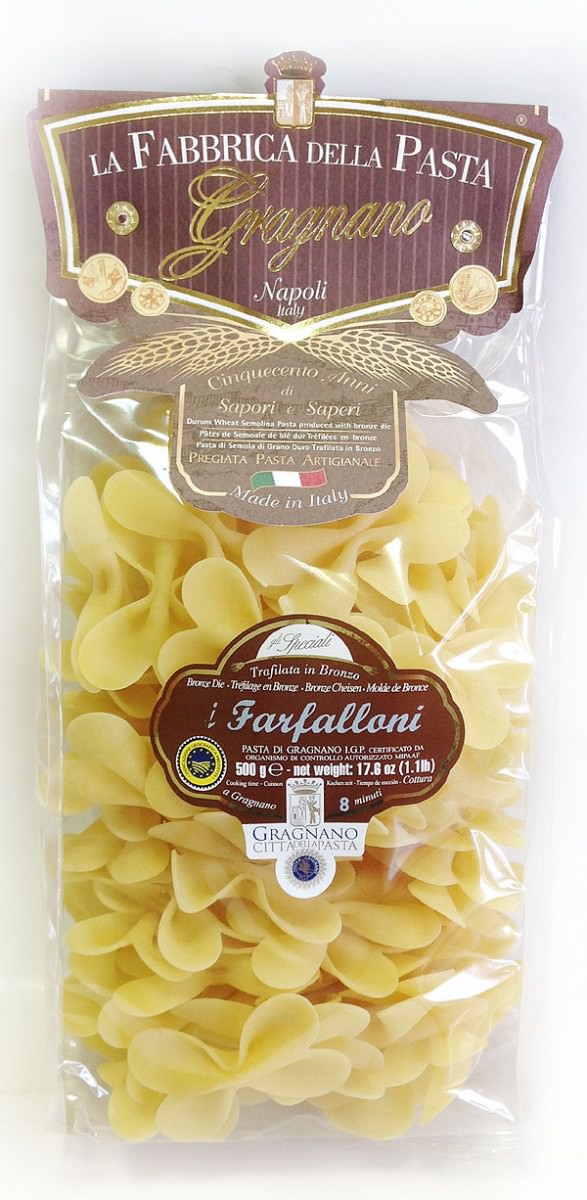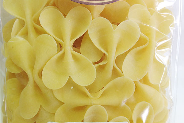 Гигантские бабочки или, как еще называют эту форму, бантики. Уникальная форма сочетается практически с любым соусом, но чаще всего вы её встретите именно с соусом из лосося и кабачков-цуккини.