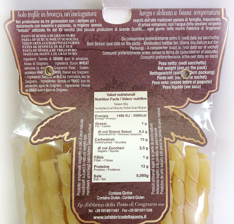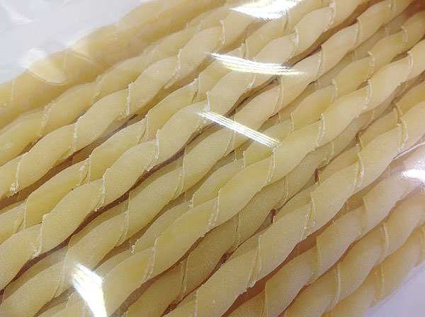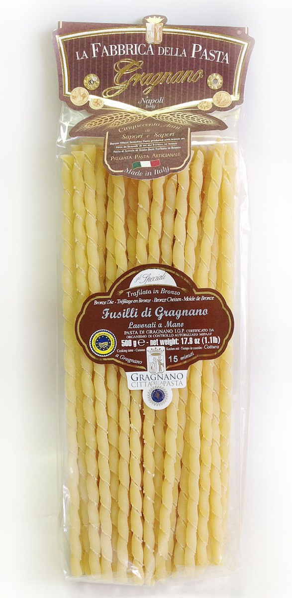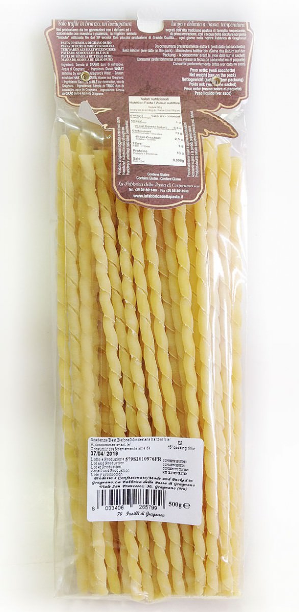 Длинная паста в форме спирали производится исключительно в ручную в соответствии с античными традициями региона. Благодаря такой неординарной форме вкусы любых соусов буду раскрываться особенно интенсивно и даже простая версия с томатами и базиликом заиграет новыми вкусовыми красками.
