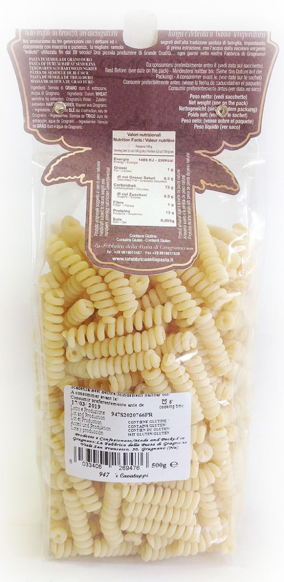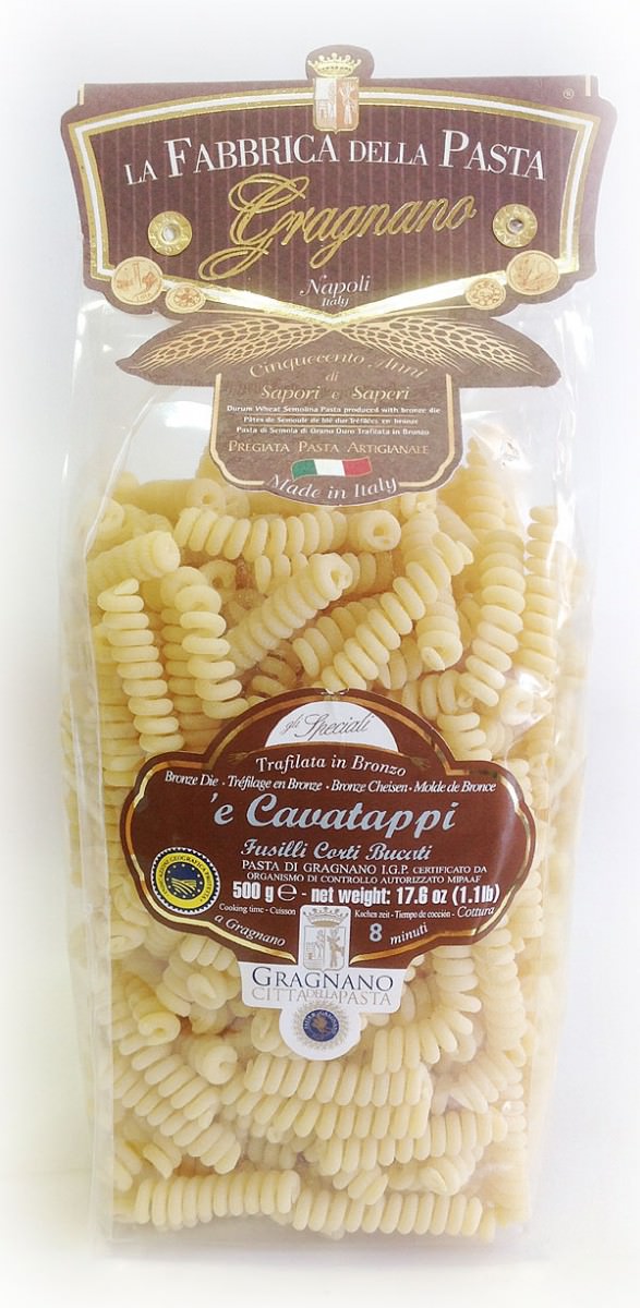 Пружинки или , дословно, "штопор" - короткая паста длинной 4-5 см. получила своё название за схожесть с винтовым стержнем штопора.