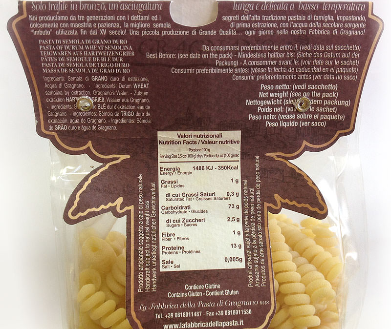 Уникальная особенность пасты в наличии сквозного отверстия в каждой макаронине, которое позволяет лучше впитать в соус и оливковое масло, что делает вкус ярче и интенсивнее.