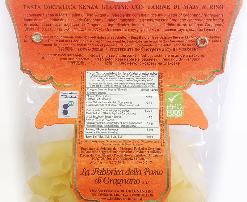 Паста без глютена производится на кристально чистой родниковой воде с изпользованием только рисовой и кукурузной муки. Разработана специально для людей с непереносимостью глютена - белка, присутствующего в пшенице.