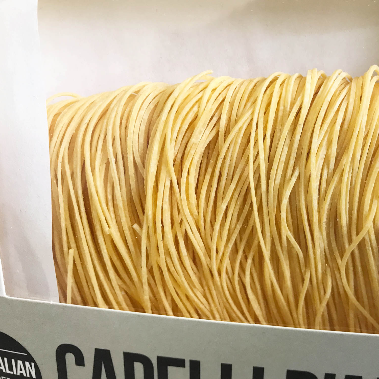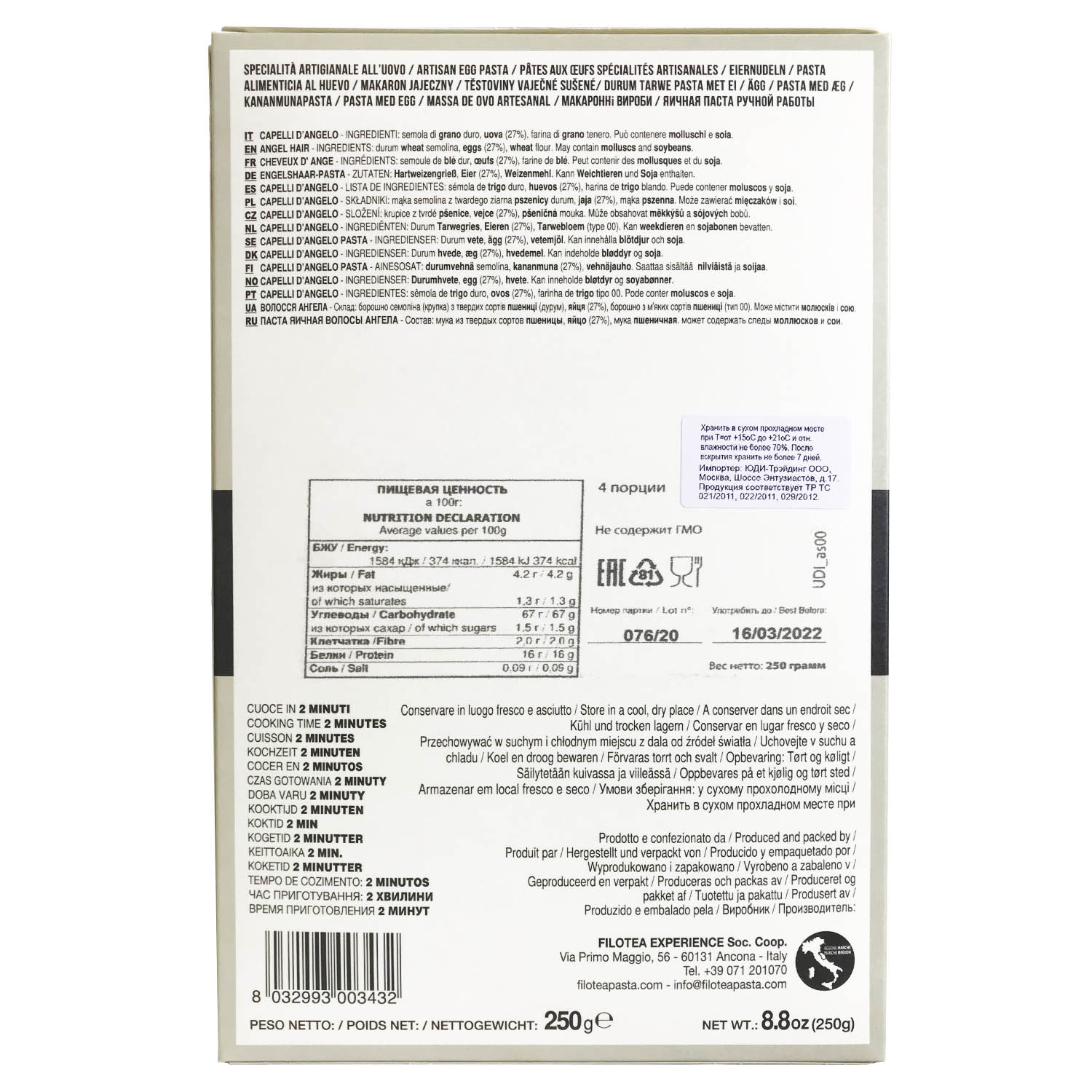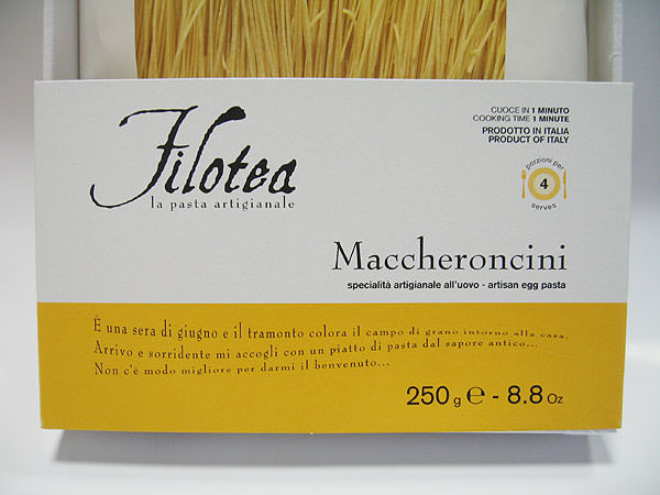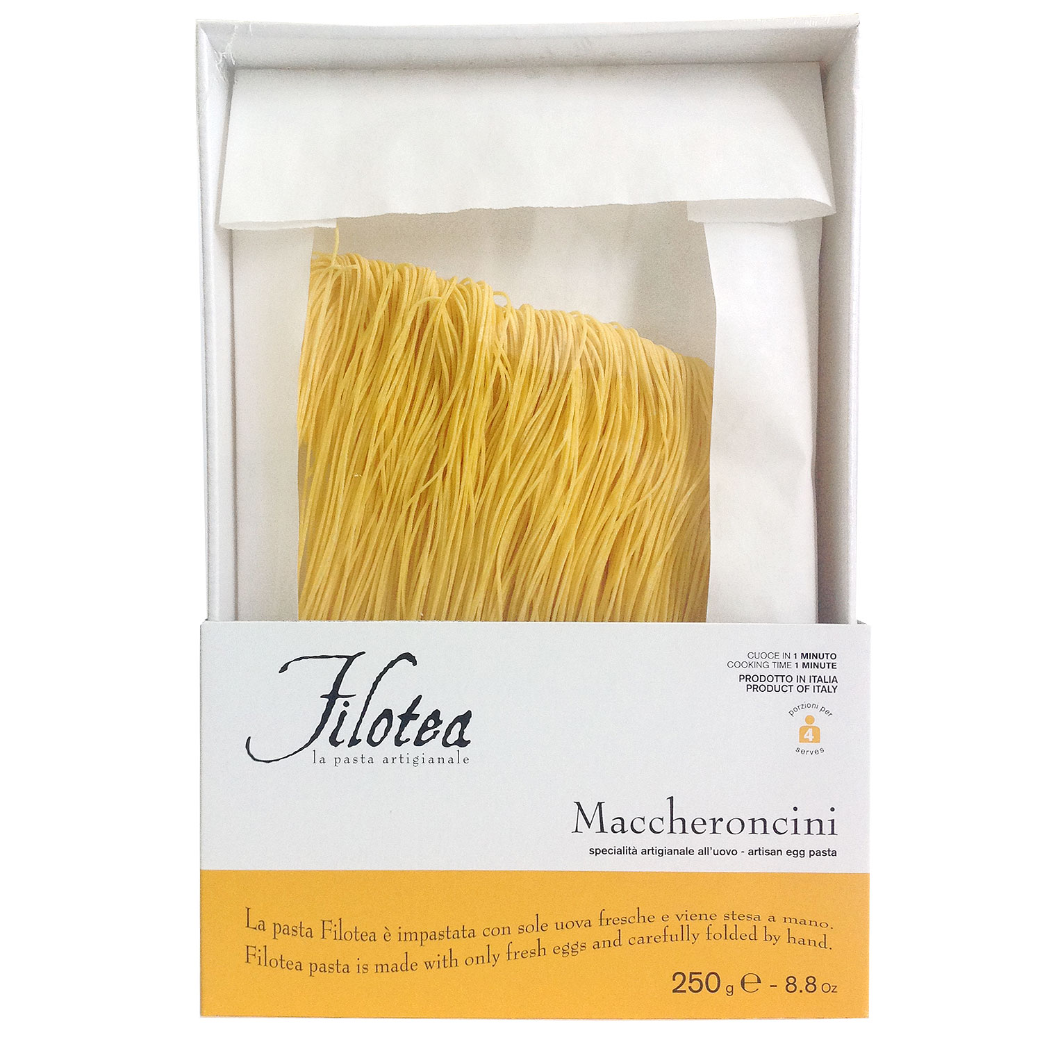 Яичная паста ручной работы Маккерончини (Капелли Д'Анджело) - самый тонкий вид пасты в мире типичный для региона Марке. Хорошо сочетается с мясными соусами, овощными и рыбными.