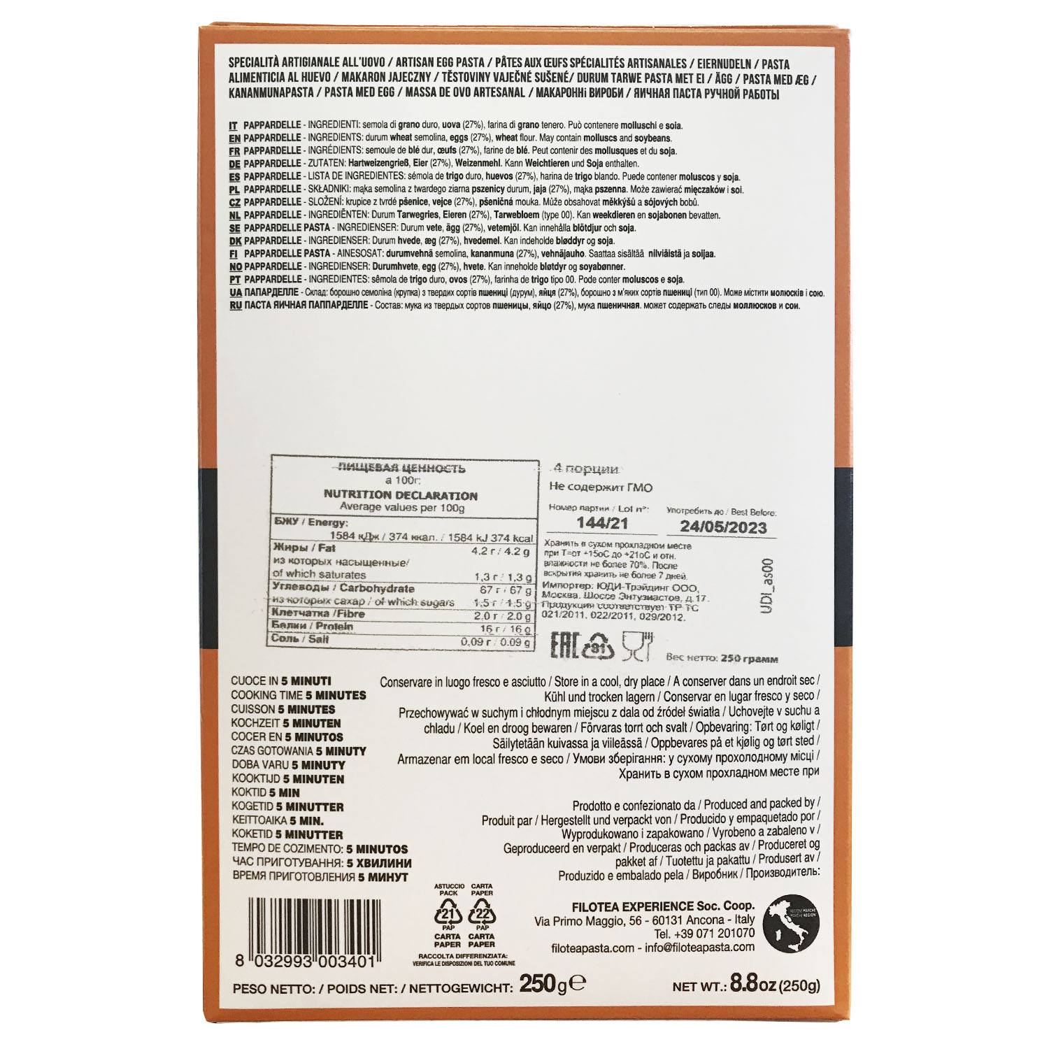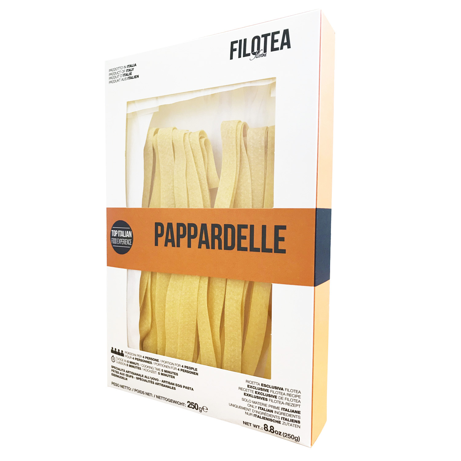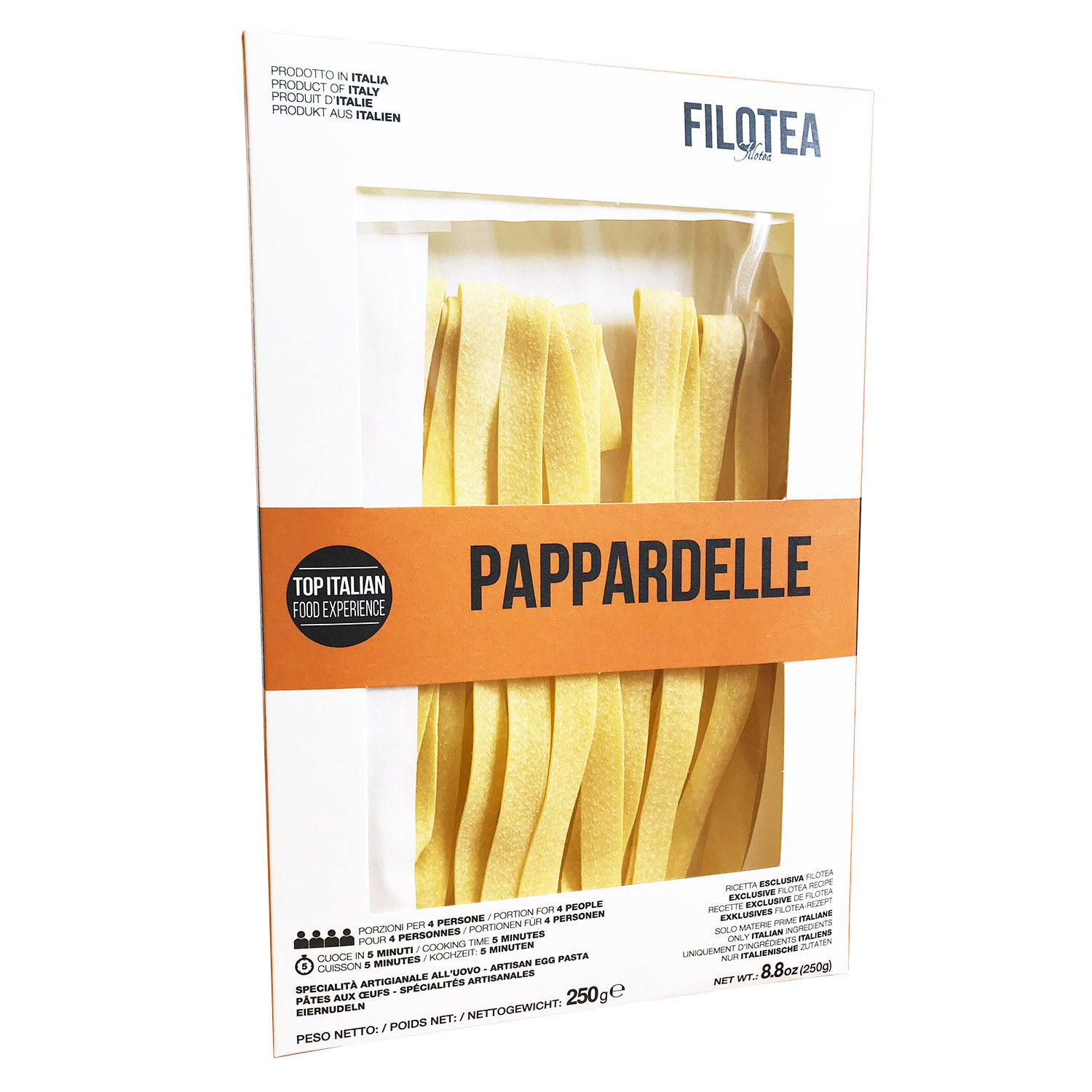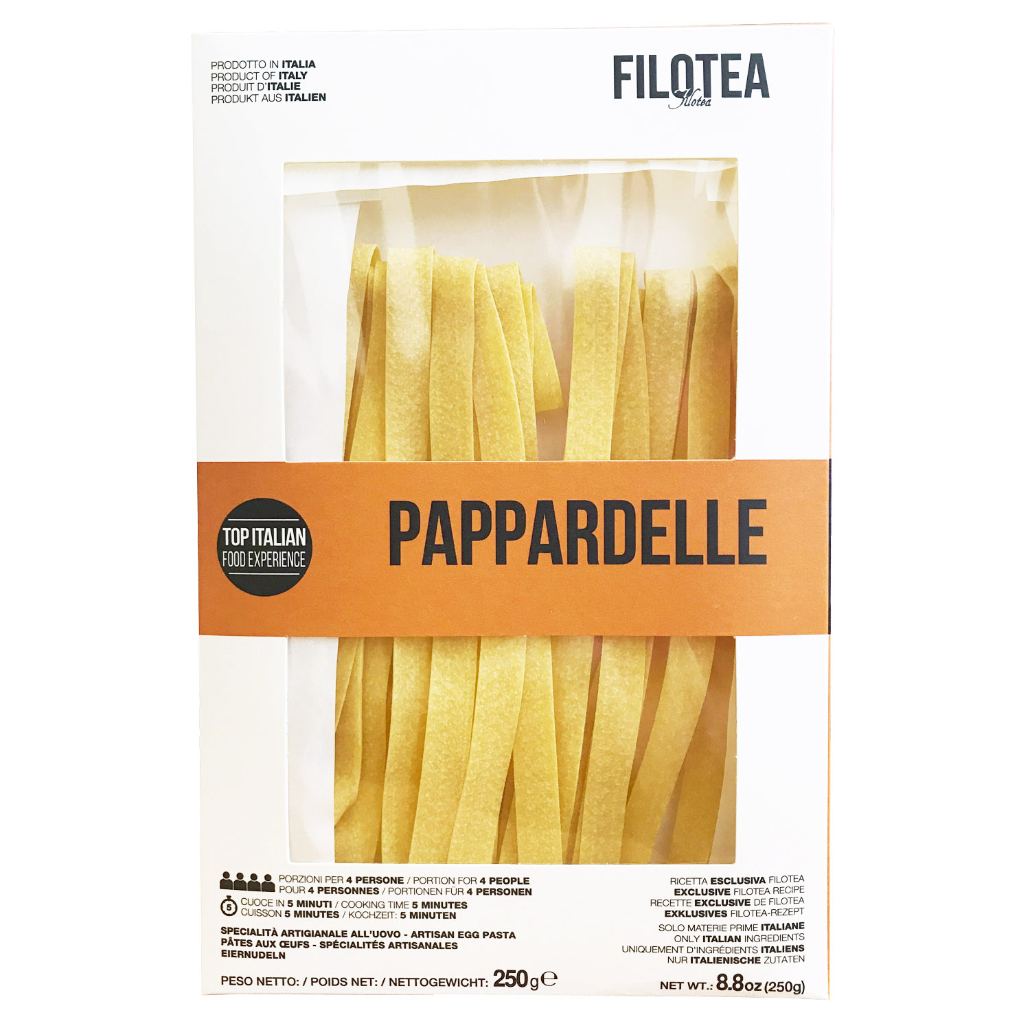 Яичная паста Паппарделле - это плоская и широкая паста. Название эта паста получила от слова «паппаре», что переводится с тосканского, как «есть с радостью и удовольствием». К Паппарделле прекрасно подойдут соусы из мяса и птицы, также её можно подать с обжаренными морепродуктами.