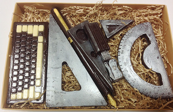 Набор фигурного шоколада "Инженер" / Geometra/architetto/ingegnere - шоколадный набор из горького и белого шоколада. Подарок широкого профиля. Можно презентовать кому угодно: от школьника или студента до директора компании.