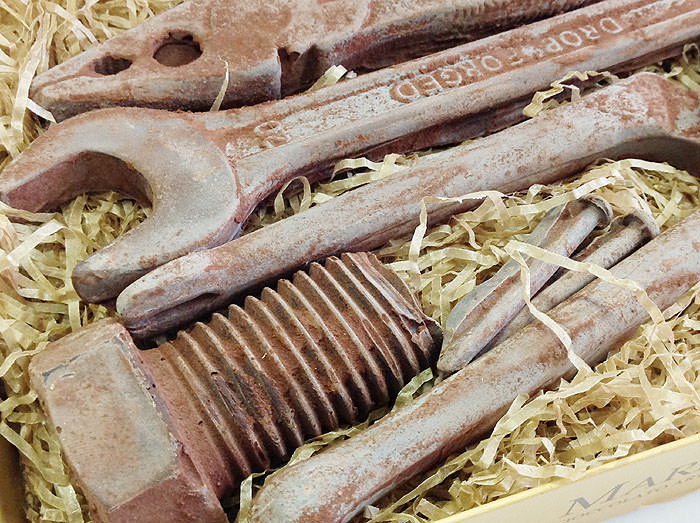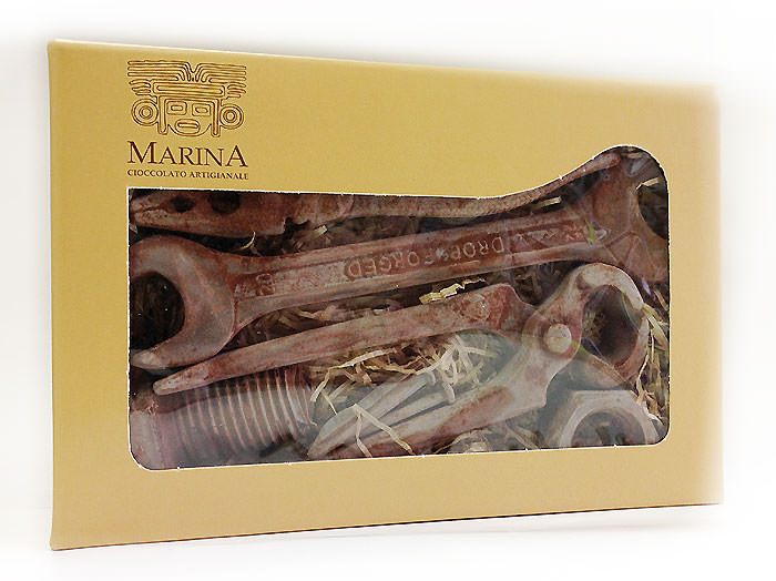 Набор фигурного шоколада "Инструменты" / Attrezzi misti - шоколадный набор из горького шоколада. В набор входят: пассатижи, гаечный ключ 20-22, клещи, гвозди, болт и шайба. Оригинально, вкусно, приносит радость.