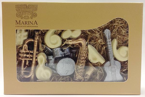 Набор фигурного шоколада "Музыкальные инструменты" / Strumenti musicali - шоколадный набор из горького и белого шоколада. Приглашаем оркестр и наслаждаемся отличным шоколадом. Отличный подарок людям, связанным с музыкой, шоу-бизнесом, индустрией развлечений.