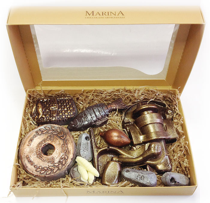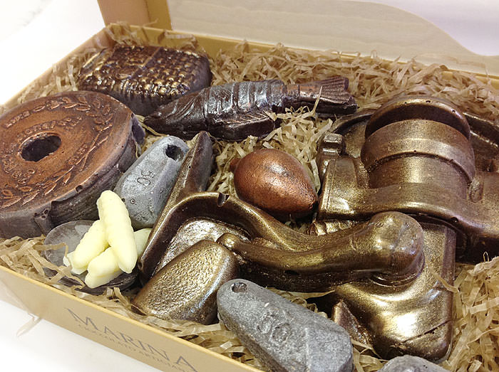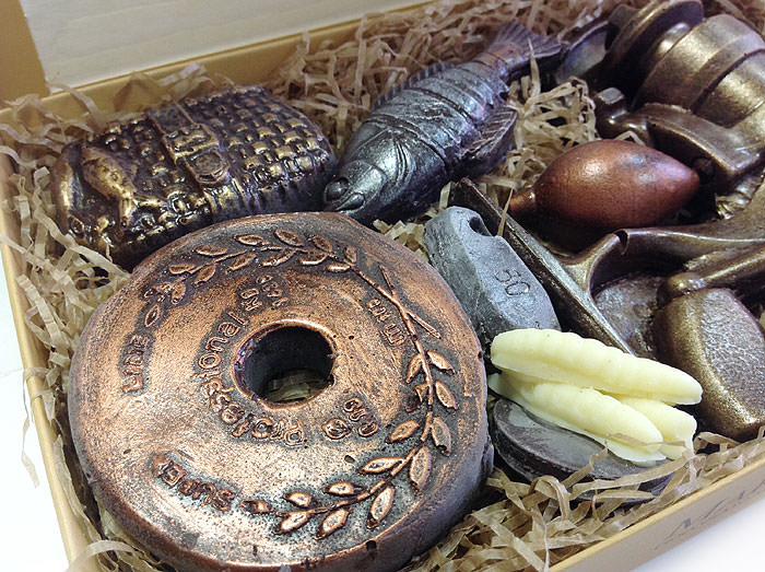 Набор фигурного шоколада "Рыбак" / Pescatore - шоколадный набор из горького и белого шоколада. "Рыбак рыбака видит издалека". Это отличный набор снастей для рыбалки, выполненных из шоколада...особенно удалась "наживка" - можно кого-нибудь разыграть :)