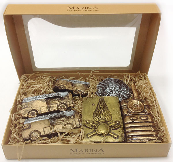 Набор фигурного шоколада "Пожарный" / Vigili del fuoco - шоколадный набор из горького шоколада. Тематический набор для детей и взрослых, а также, неожиданно приятный подарок для сотрудников МЧС и пожарных.