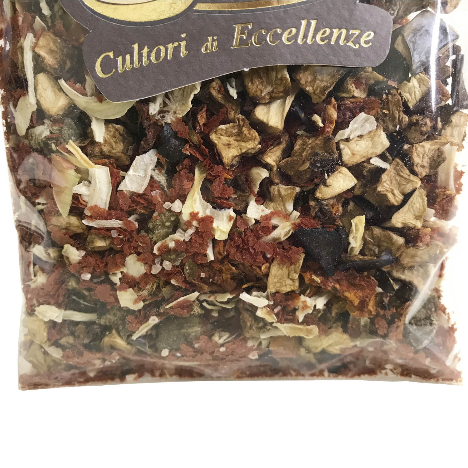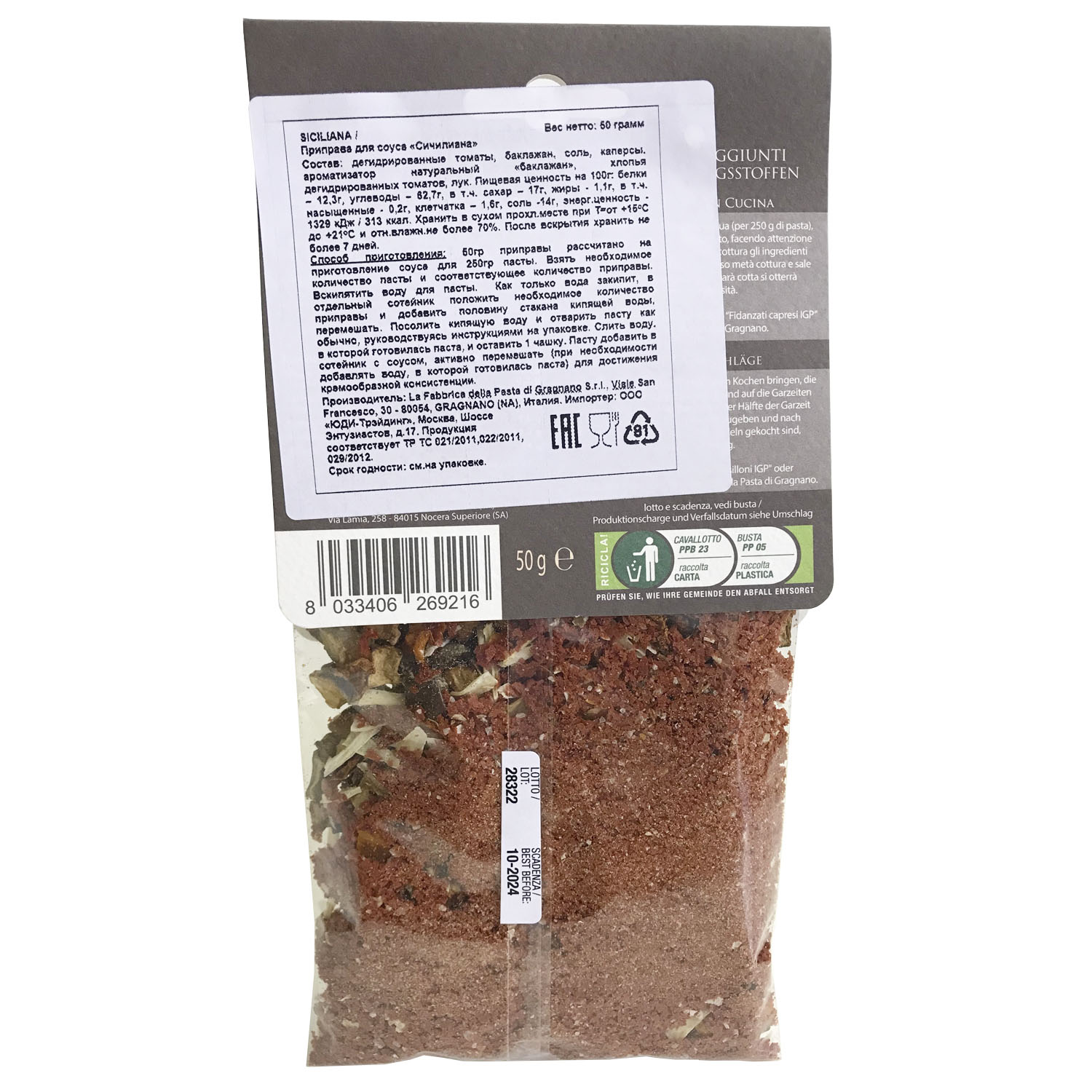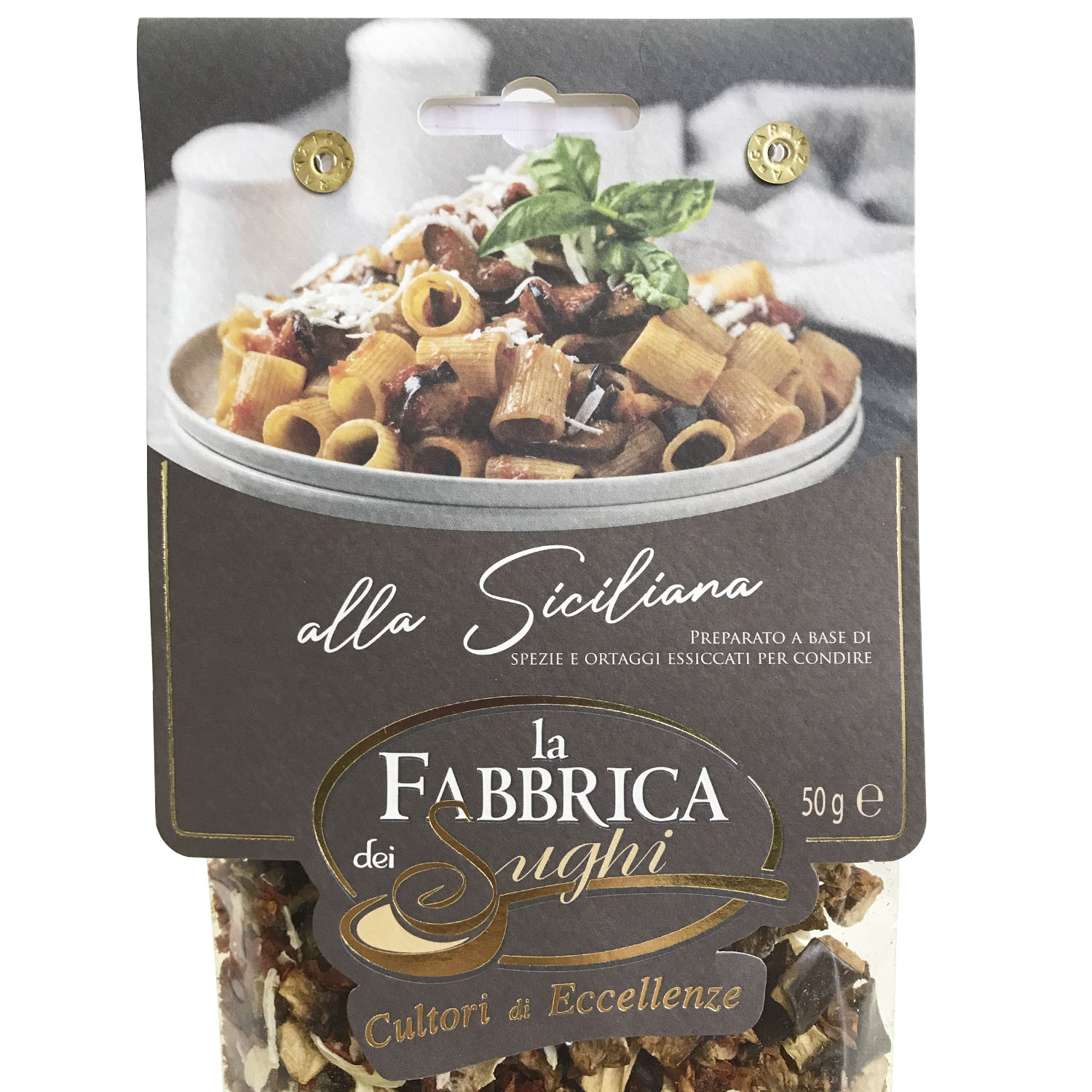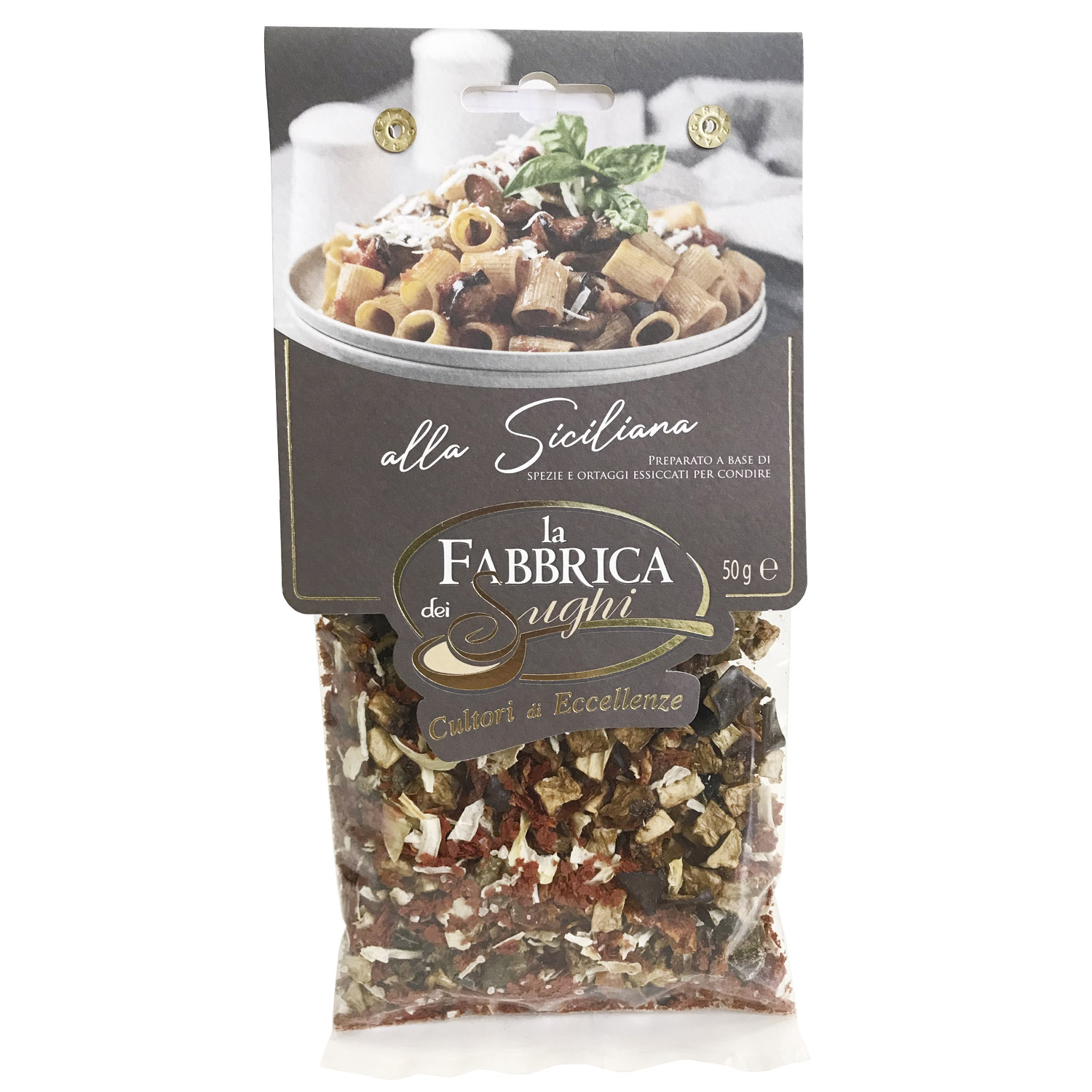 Приправа для приготовления соуса "Сичилиана" - соуса сицилийской кухни, с томатами, баклажанами, каперсами и луком. Хорошо подходит для коротких форм пасты, например, пенне.