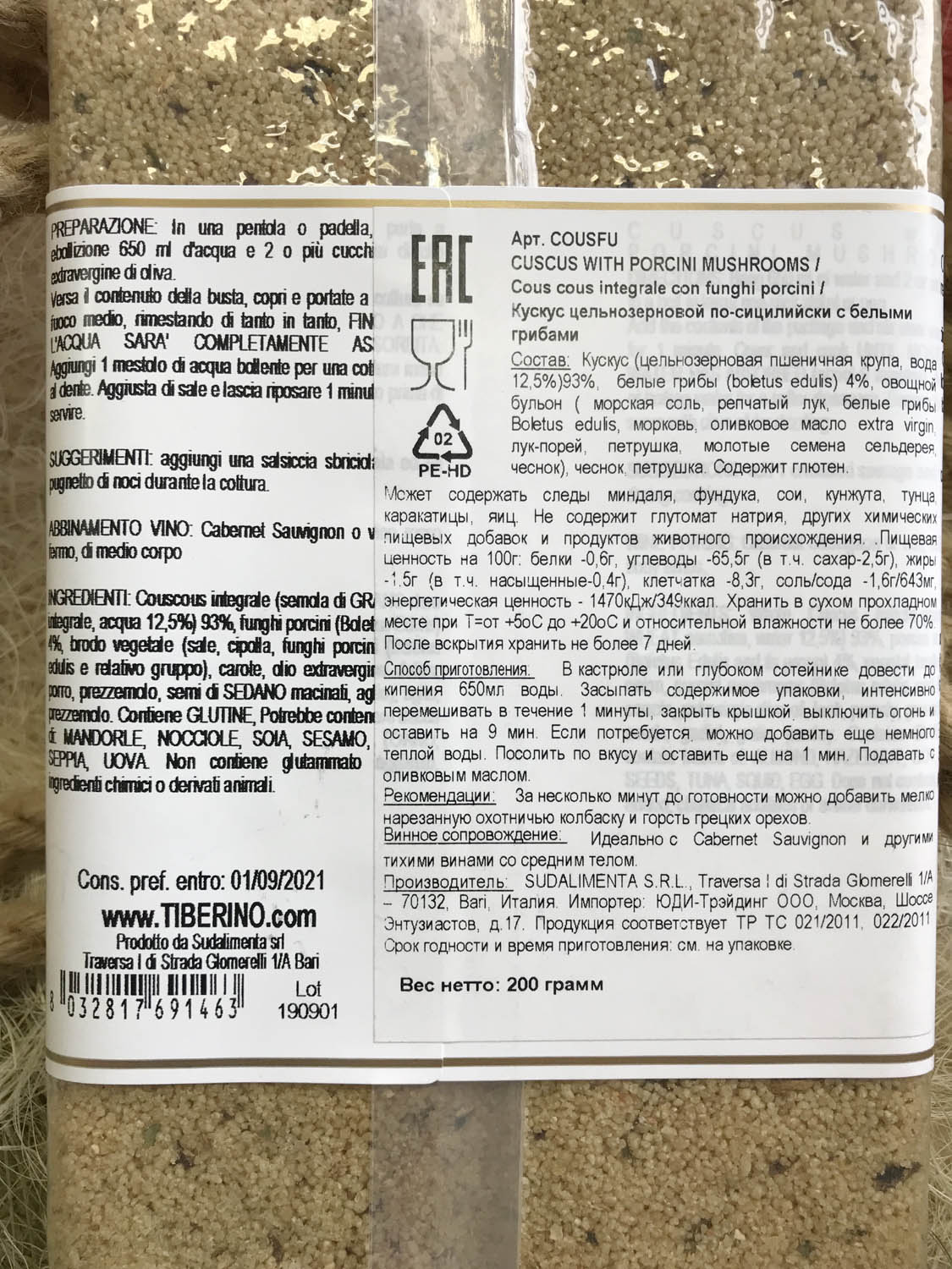 | Оригинальное наименование | COUS COUS CON FUNGHI PORCINI 200G |
