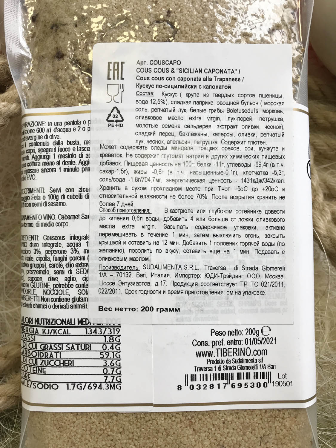 | Оригинальное наименование | COUS COUS CON CAPONATA ALLA TRAPANESE 200G |