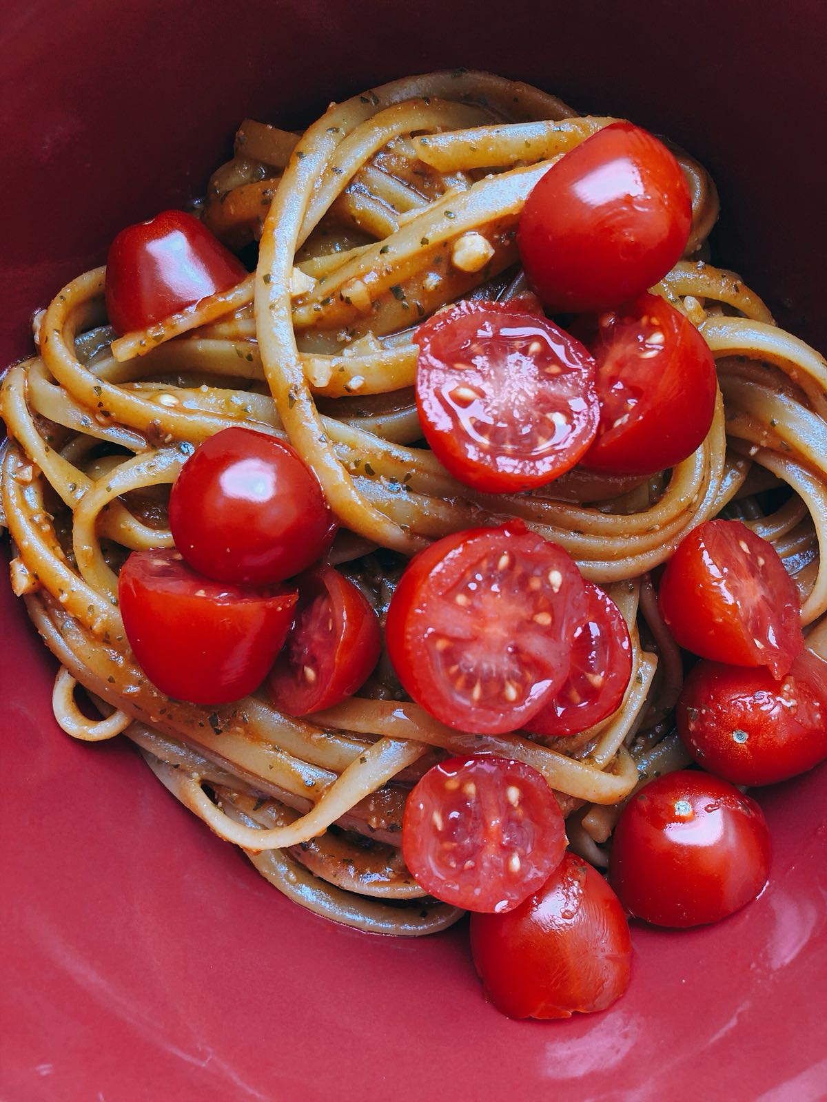 Паста (макаронные изделия) (мука из твердых сортов пшеницы, вода 12,5%) 85%, томаты 7%, миндаль, овощной бульон (морская соль, репчатый лук, белые грибы Boletus Edulis, морковь, оливковое масло extra virgin, лук-порей, петрушка, молотые семена сельдерея, чеснок), базилик, чеснок. Содержит глютен. Может содержать следы фундука, сои, кунжута, тунца, каракатицы и яиц. Не содержит глутамат натрия, других химических пищевых добавок и продуктов животного происхождения.