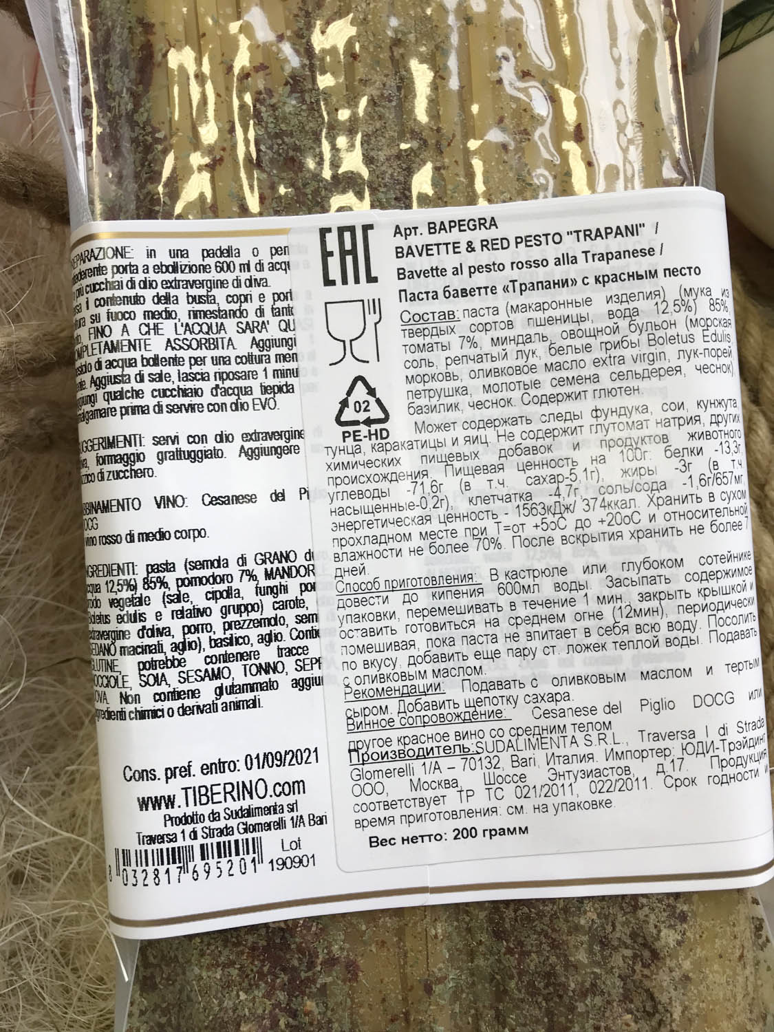 | Оригинальное наименование | BAVETTE AL PESTO ROSSO ALLA TRAPANESE 200G |