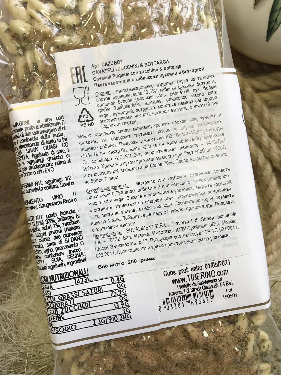 | Оригинальное наименование | CAVATELLI PUGLIESI CON ZUCCHINE E BOTTARGA 200G |