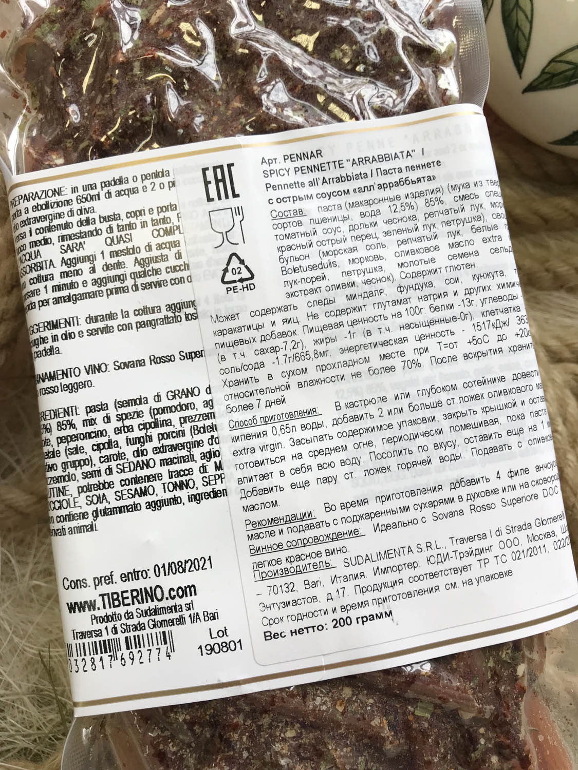 | Оригинальное наименование | PENNETTE PICCANTI "ARRABBIATA" 200G |