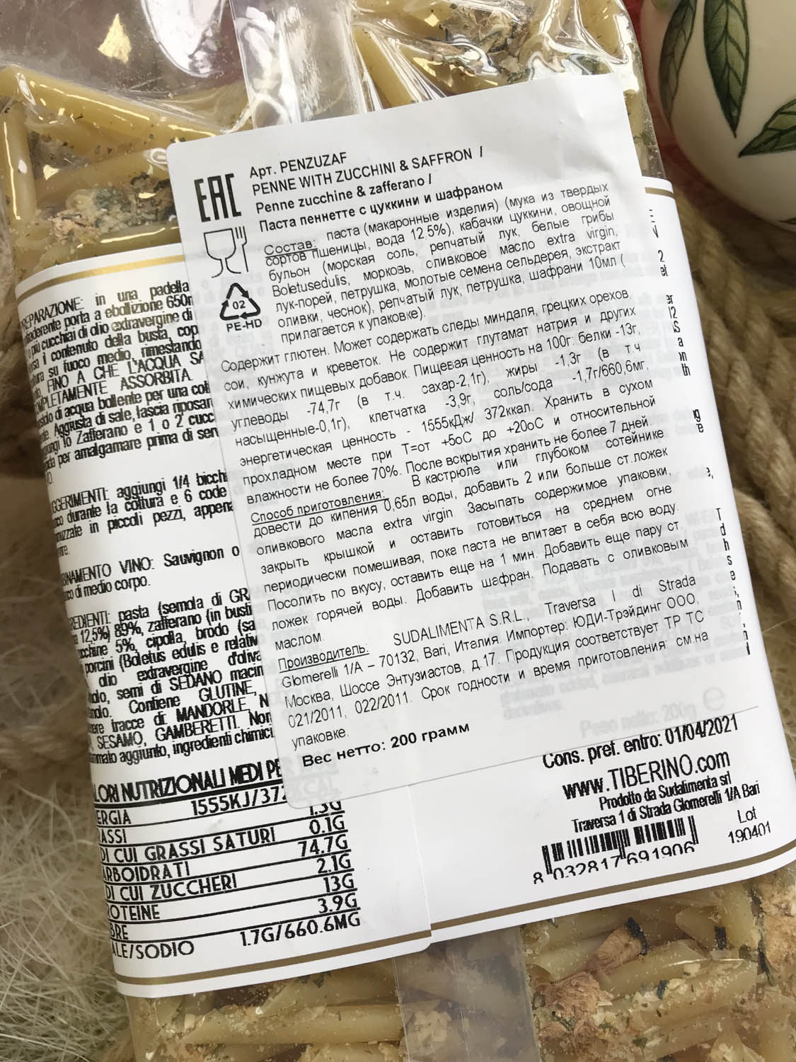 | Оригинальное наименование | PENNETTE ZUCCHINE & ZAFFERANO 200G |